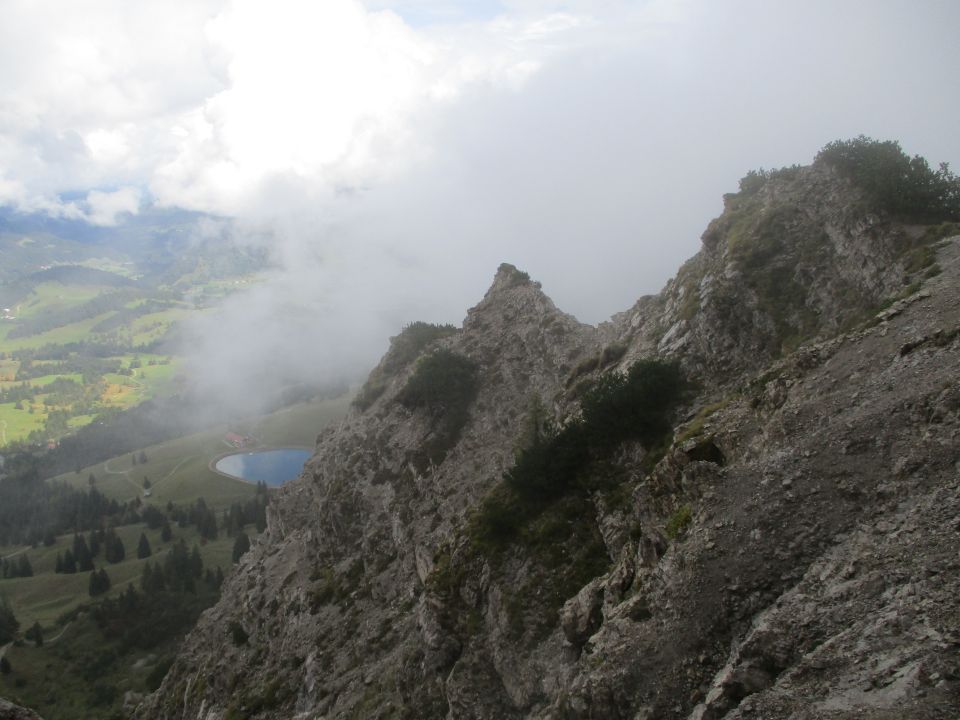 Wir waren die Einzigen im Klettersteig und auf der weiter gehenden Tour über Kühgundkopf und -rücken. Nur auf dem Gipfel des Iseler (kleiner Abstecher vom Klettersteig aus) und auf dem Zustieg dorthin trafen wir ein paar Wanderer. Genuss pur in großartiger Einsamkeit inmitten einer gespenstisch-schaurigen Atmosphäre :-).
