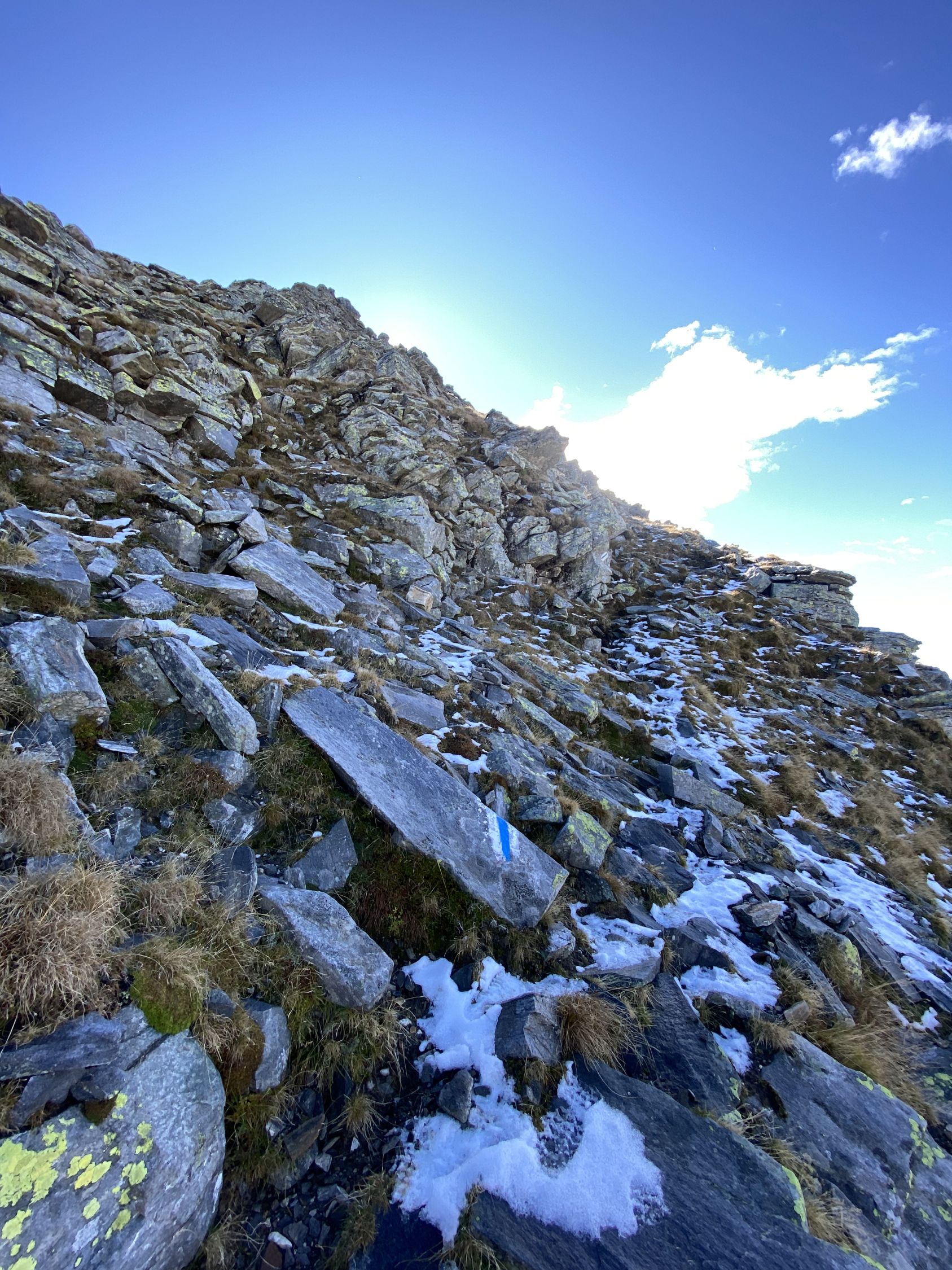Die ganze Route ist trocken, es liegen nur ein paar kleine Schneeflecken auf dem NW Grat. Sie sind aber problemlos passierbar.