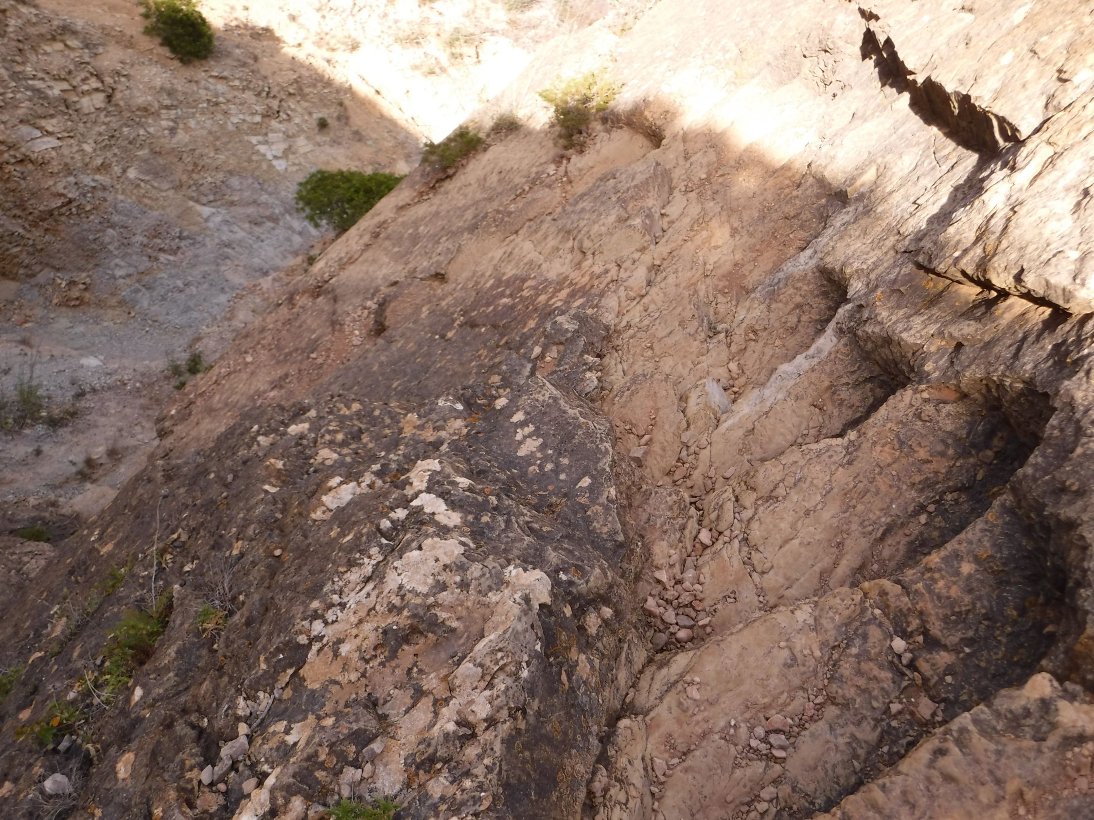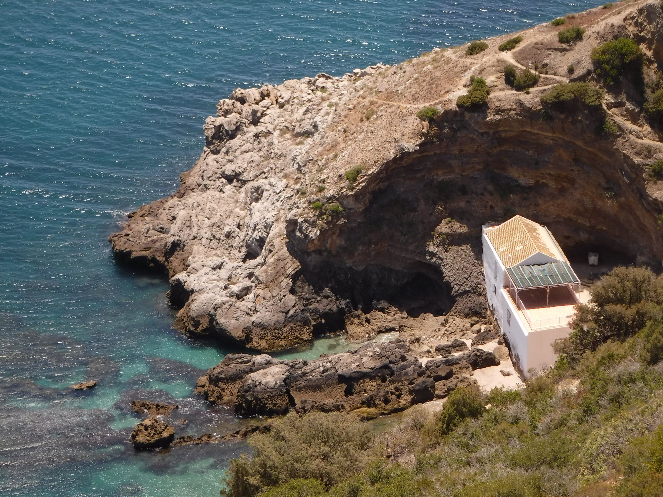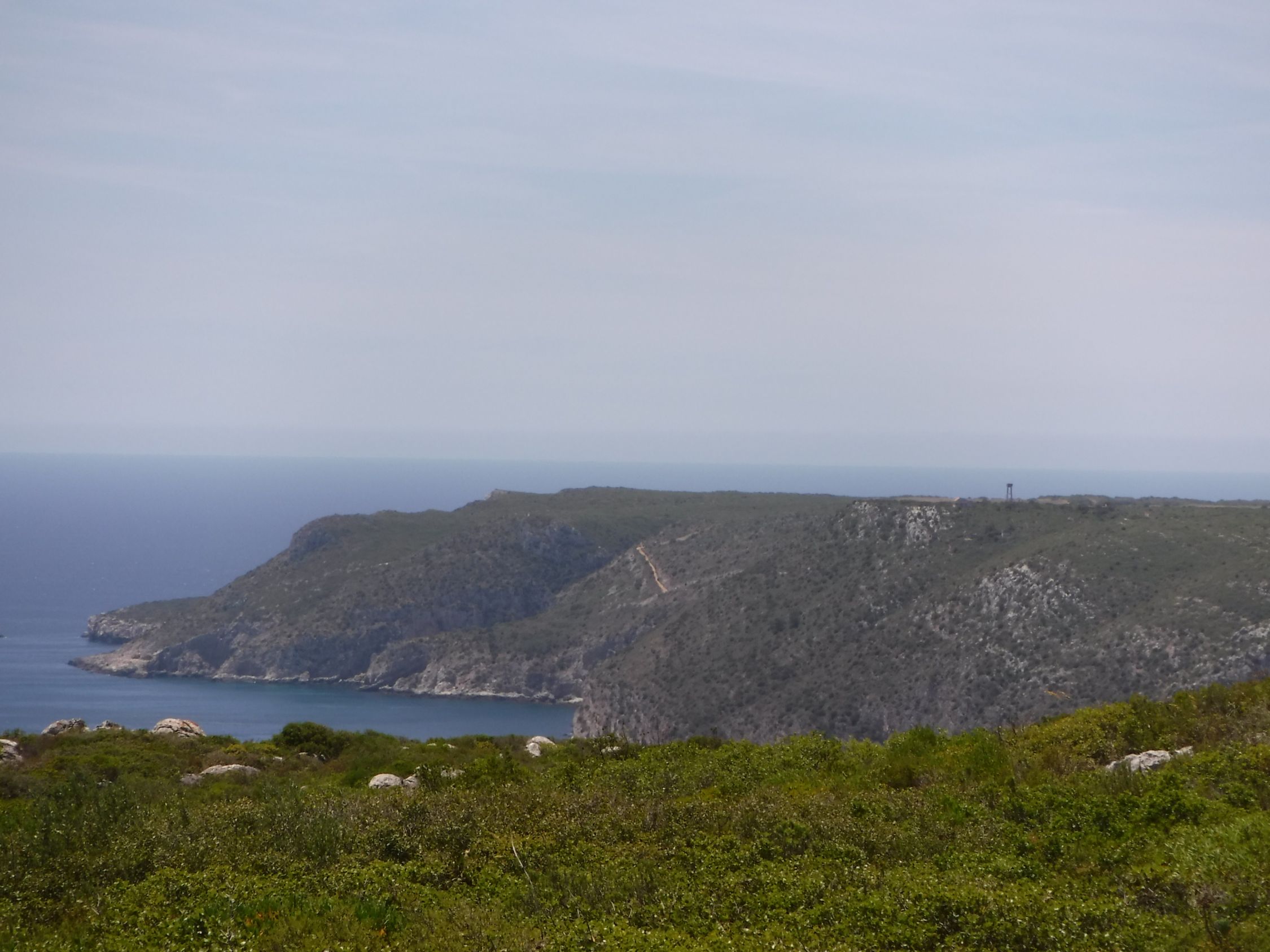 Ursprünglich suchte ich den Zustiegsweg zur Via Ferrata Pinheirinhos. Doch dies gelang mir nicht wie gedacht. Sondern ich fand nach vielem Suchen zwischen mehreren Pfaden auf der Schrattenkalkebene den Abstieg und das Textilseil hinab zur Höhle Cova das Ovelhas. Etwas darunter endet der Klettersteig, was ich zu dem Zeitpunkt nicht wußte.