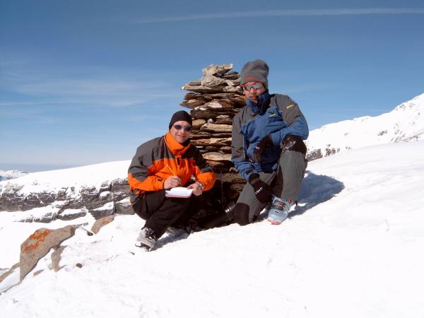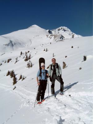 Gipfelhang sehr verblassen und sehr dünne Schneeschicht aber stabile Verhältnisse