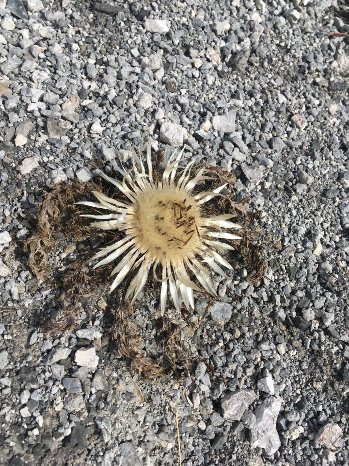 Start 10 Uhr kleiner Parkplatz an Berninapassstrasse, 9 Grad, windstill. Zuerst dem markierten Wanderweg bis Plan da li Tegi, jetzt steil hoch im Val di Gess das nicht markierte Weglein bis Punkt 2336. Teilweise etwas ausgesetzt, dies ist der schwierigste Teil der Rundtour. Nun weiter unschwierig Richtung Nordosten bis zum Gipfel mit dem Steinmann. Abstieg zuerst wenig steil Richtung Norden zu Punkt 2370. Jetzt direkt Richtung Osten steil den Hang hinunter, aber gut bewachsen und wenige Schafspuren erleichtern das Absteigen. Unterhalb der Strasse für die Fuorcla di Livigno auf Wegspuren bis vor Brücke und Wiederaufstieg auf markiertem Wanderweg bis Plan da li Tegi und zurück zum Parkplatz. Rundtour ohne Pausen ca. 4 Stunden, T4-. Empfehlenswert!