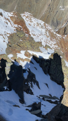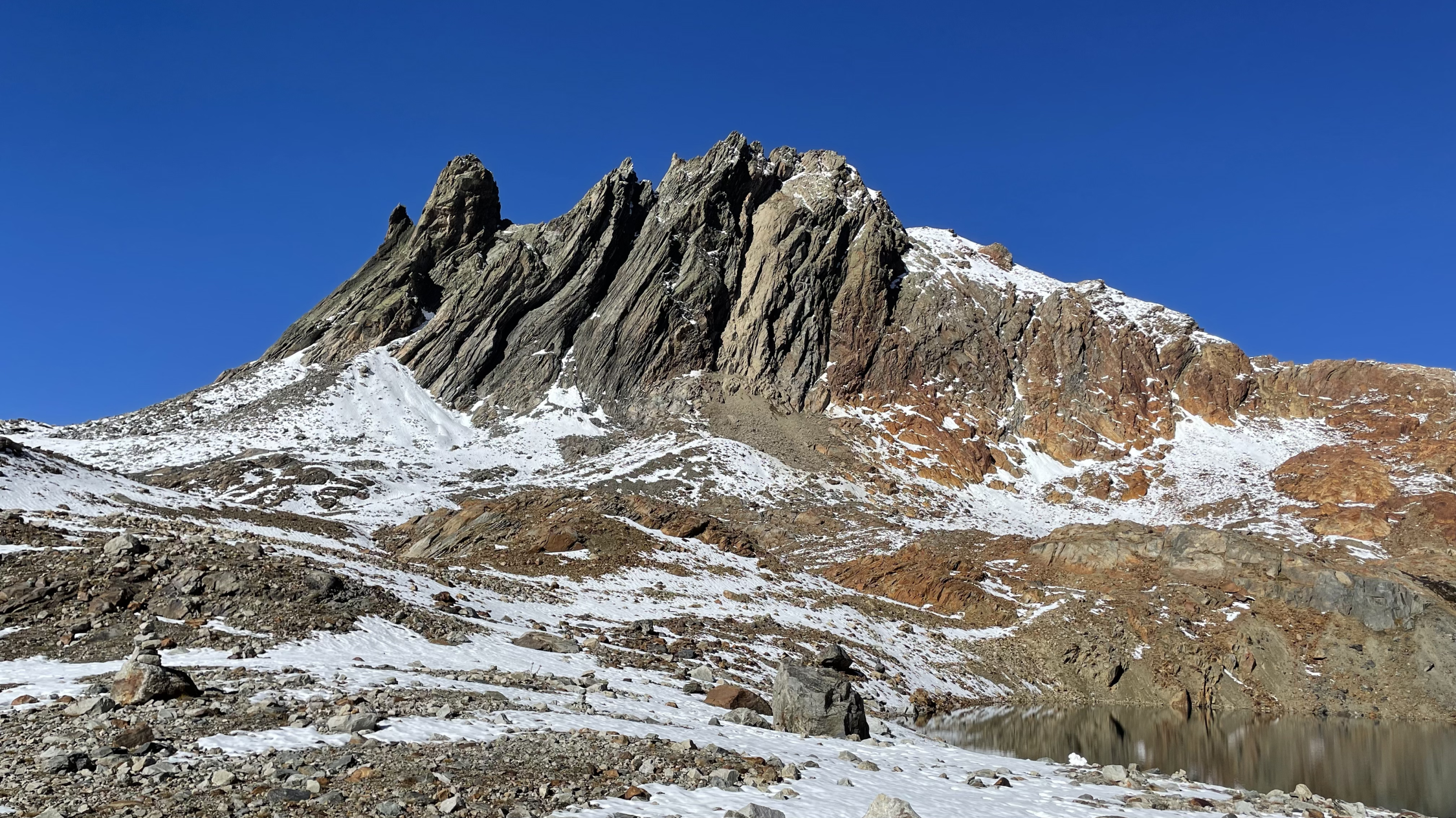 Zügig zur Gelmerhütte und weiter zur Schwemmebene Obrist Diechter. Nicht mehr viel Wasser, so dass man fast überall die kleinen Bachläufe trocken queren kann. Weiter bis zum Seelein auf 2666m trocken und problemlos. Ab hier immer wieder Schneefelder. Wegen der aktuellen Temperaturen recht mühsam, mal trägt es knapp, mal bricht man ein... In diesen groben Blockfeldern an der Üssri Garwiidilimi vorbei muss man deswegen etwas aufpassen. Der letzte rote Hang geht ganz gut, am besten sehr weit links (westlich) den Steinmännchen folgen entlang der Felsen (etwas weniger schuttig). Vom Grat dann recht direkt zum Vorgipfel, wieder mühsam wegen dem Schnee. Hinauf zum Hauptgipfel recht alpin, quasi kombiniertes Gelände (Schnee/Fels), was nochmal Konzentration erfordert. Gleicher Rückweg, wegen den Verhältnissen jedoch nur wenig schneller zum Seelein als im Aufstieg.