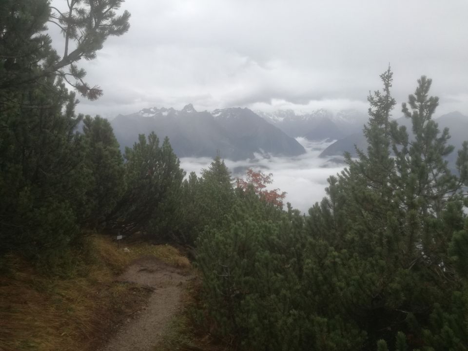 Start 9.30 Uhr an der Muttersbergbahn Bergstation bei leichtem Nieselregen über durchwegs trockenen Wanderweg zur Frassenhütte und Gipfel. Am Gipfel noch Wetterbesserung - Abstieg dann im leichten Dauerregen aus den hohen Wolken.