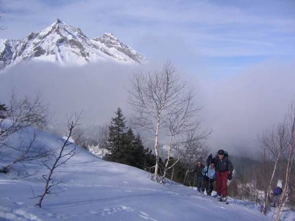 Unten Hartschnee bis ca 1200 m, oberhalb Pulverschnee auf einer tragenden Unterlage, in den steilen Südhängen Hartschnee teilwese tragend.