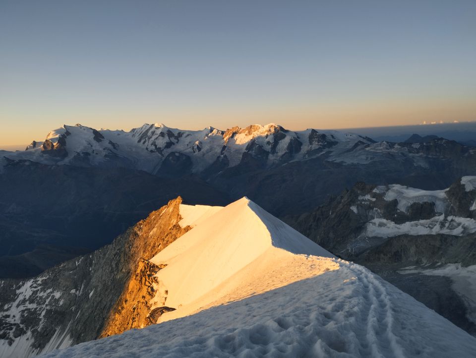 Start um ca. 3:15 bei der Rothornhütte, Ankunft am Gipfel um 7:30. Der Grat war komplett schneefrei und auch auf der Binerplatte waren die Verhältnisse ausgezeichnet. Den Einstieg zum Wasserloch haben wir verpasst, weshalb wir weiter rechts etwas unangenehm durch schuttdurchsetztes Gelände eingestiegen sind. Im Abstieg konnten wir die richtige Stelle jedoch ausfindig machen. Den Gipfel konnten wir zeitweise für uns alleine geniessen. Das Fixseil an der Kanzel und der Abseilstand am Wasserloch waren noch vorhanden, sind aber mittlerweile offenbar entfernt worden (Zuverlässigkeit fragwürdig). Die Binerplatte kletterten wir am Seil ab, wobei uns einige Seilschaften entgegen kamen, die mit der Situation sichtlich überfordert zu sein schienen. Aber auch diese Hürde konnten wir mit etwas Geduld gut überwinden. Am Couloir zum Eisloch haben wir abgeseilt, um schnell aus der Schussbahn zu geraten. Der weitere Abstieg verlief ohne Probleme. Die Steinschlagaktivität an diesem Tag war gehörig, es klöpft und tätscht überall, auf der Route wurden wir aber glücklicherweise verschont. Eine richtige Traumtour auf einen ebenso traumhaften Gipfel! Gerne wieder!