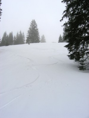 Vom Obersee entlang des Sees bis zur Brücke P 990, von da entlang des Alpweges über Brunnmettlen nach Ahornen. Dann über die leicht bewaldete Fläche nach NE bis zum P 1870. Wegen des dicken Nebels dort umgekehrt.