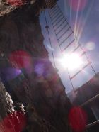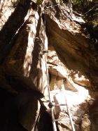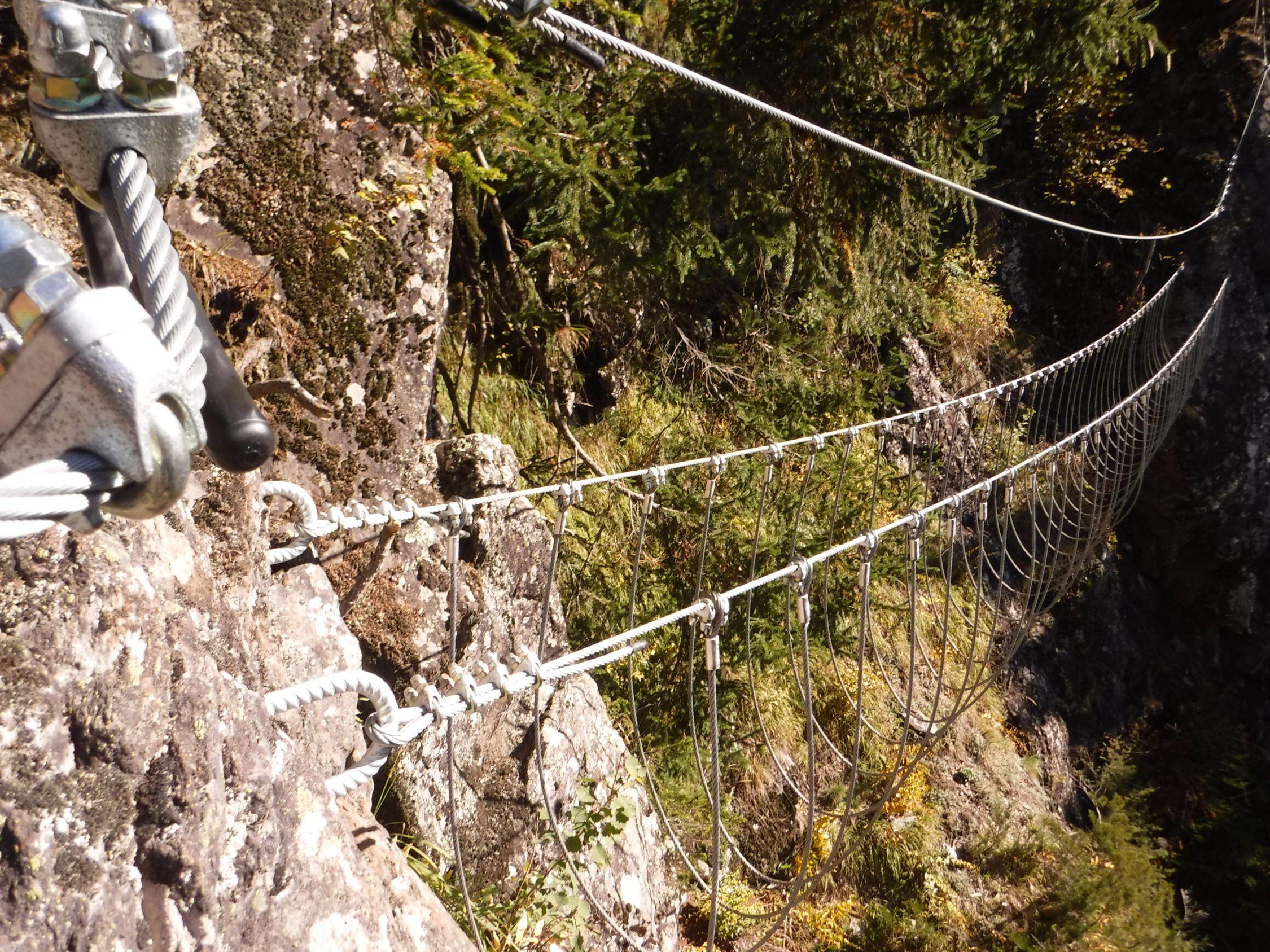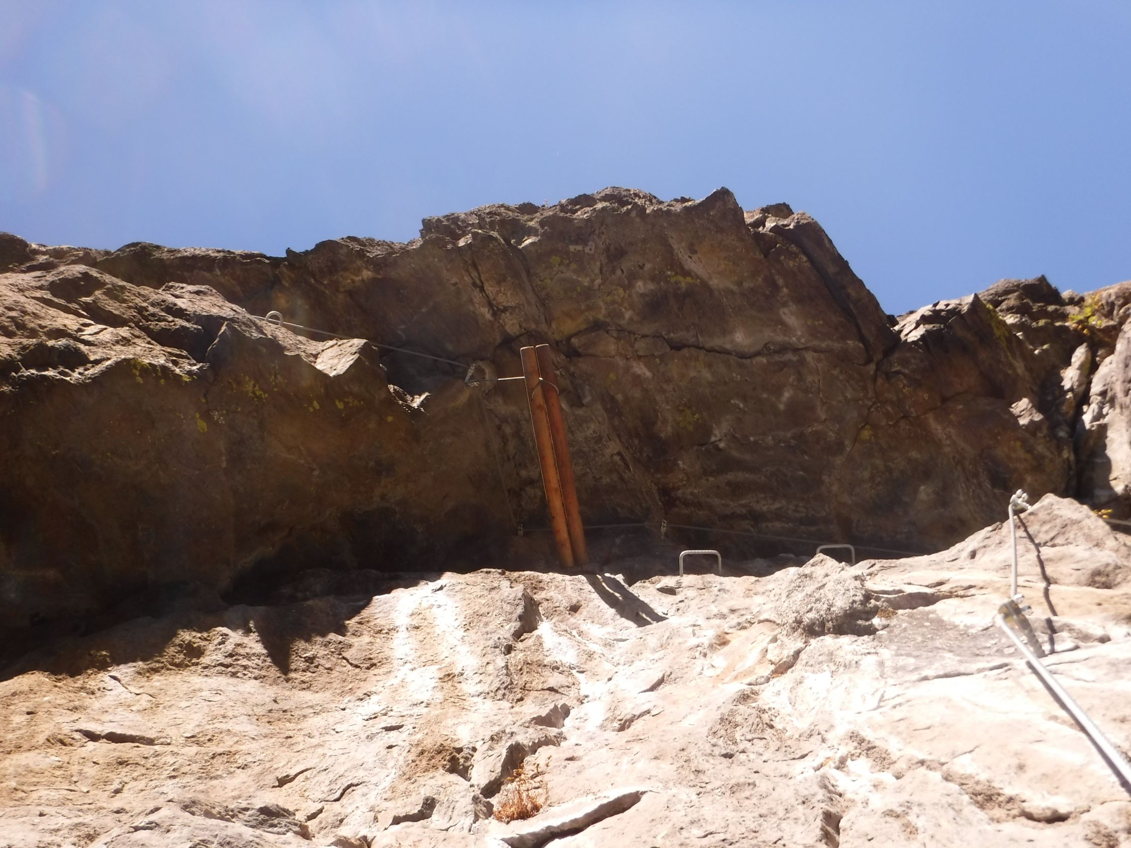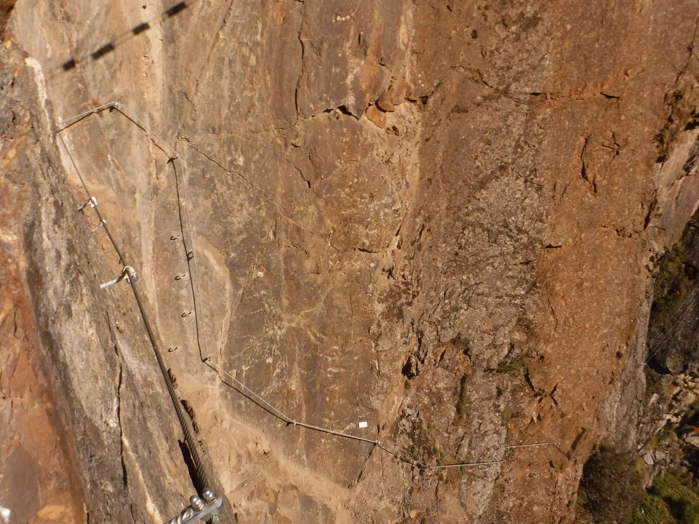 Das graue Steigbuch („Hans Kammerlander Extrem“) wurde am 3.10.2022 gelegt und es wurden die ersten 3 Seiten bereits beschrieben. Ohne Rastschlinge und Expresse hätte ich den Steig nicht geschafft, in einem Zuge durchzuklettern. Sondern ich legte viele Pausen ein gerade nach den Schlüsselstellen. Das (gesicherte) Aussichtsbankerl mit dem Steigbuch war das „Highlight der Erholung“ zwischendurch.