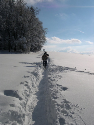 Zürich Plattenstrasse, erste Abfahrt bis HB (etwas prekäre Schneeverhältnisse). S4 bis Zürich-Brunau. Höckler- Höckleregg-Folenweid-Balderen (Prost!) -Felsenegg (Chässchnitte) -Langnau a.A. (Fondue).
