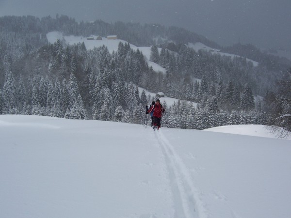 100 m nach der Talstation des Skilifts Hemberg; ca. 850 m; leichte Skitour