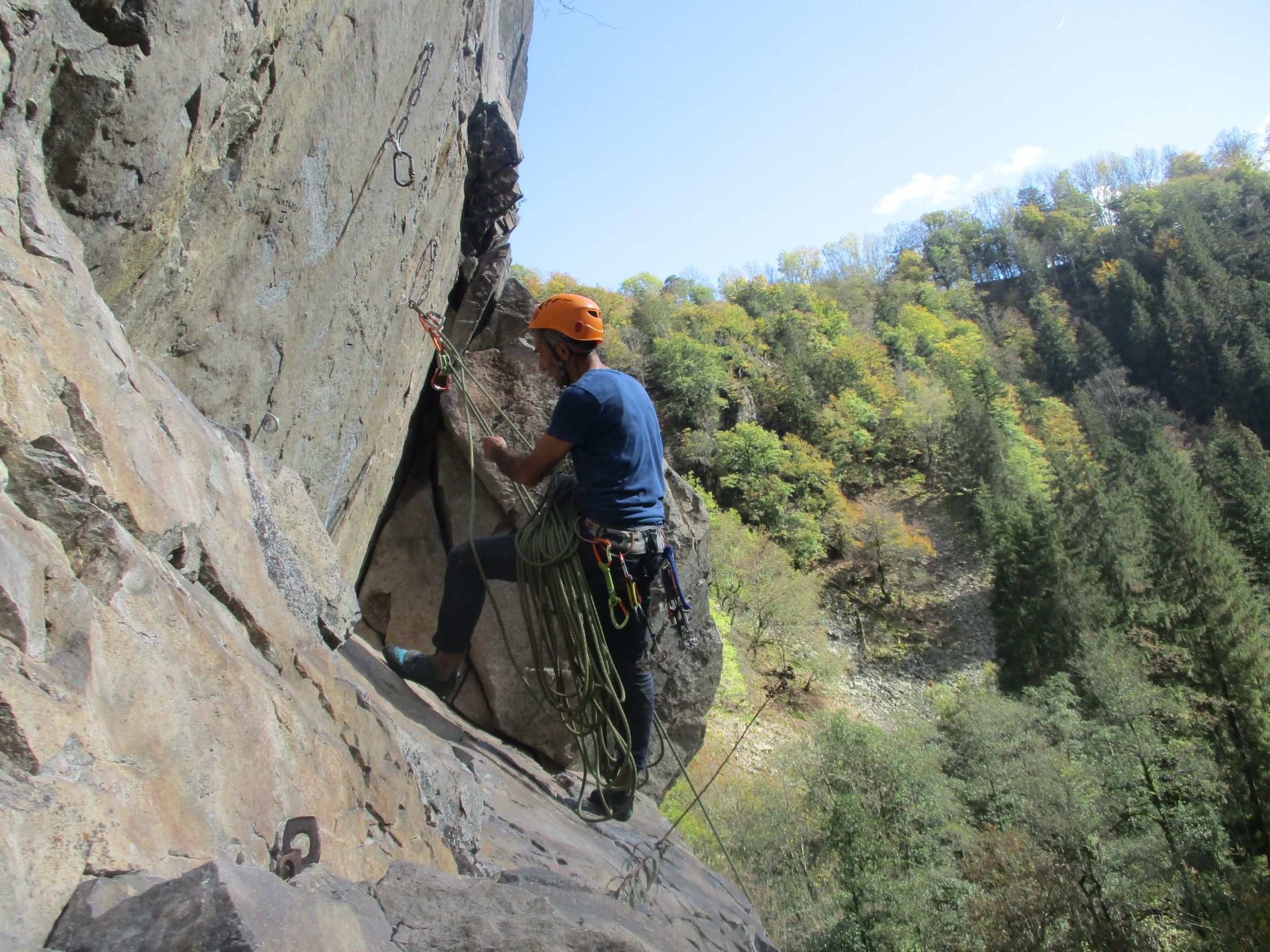 In der Tannholzwand war´s heute, Sonntag, überwiegend nass. Dennoch haben wir ein paar einfachere, halbwegs trockene Routen in der "Rechten Wand" gefunden.