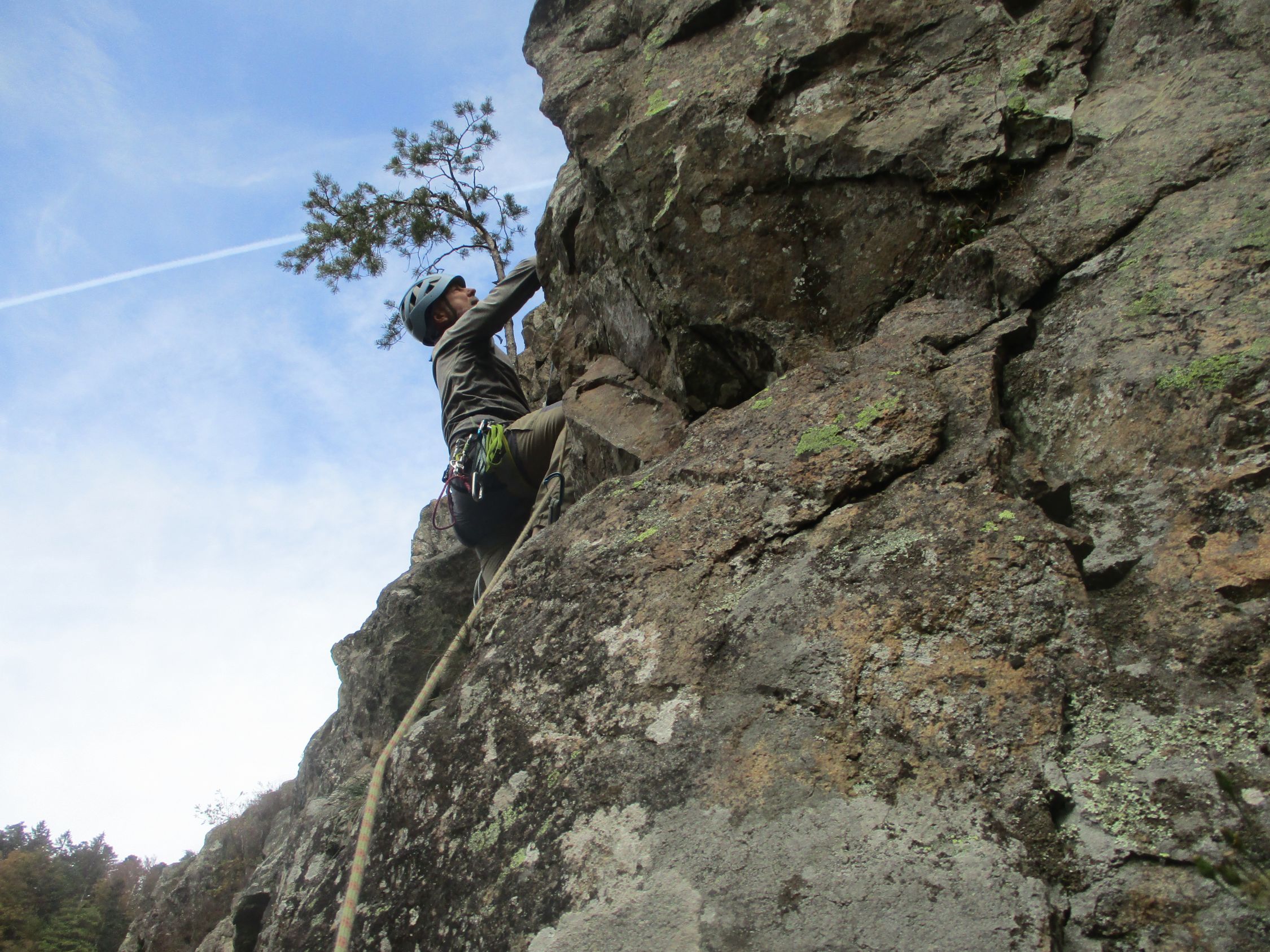 Dass wir heute an der Tannholzwand, abgesehen von zwei Klettersteigbegehern, allein waren, mag vielleicht nicht verwundern. Doch dass wir am Samstag Nachmittag am Schwedenfels allein kletterten, schien uns schon etwas seltsam.