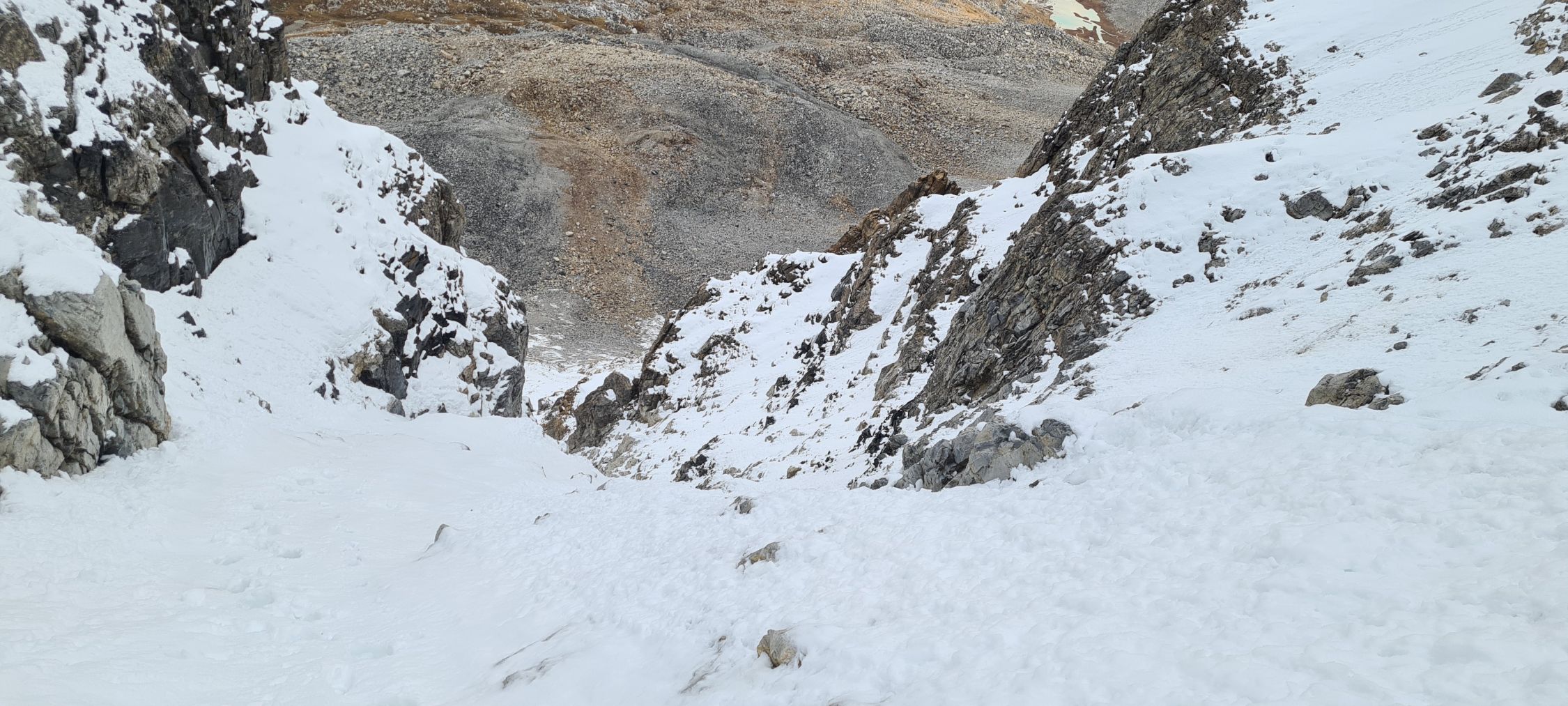 Der Schnee im Couloir war komplett durchnässt und mühsam zu begehen.
