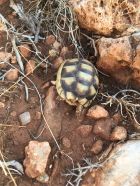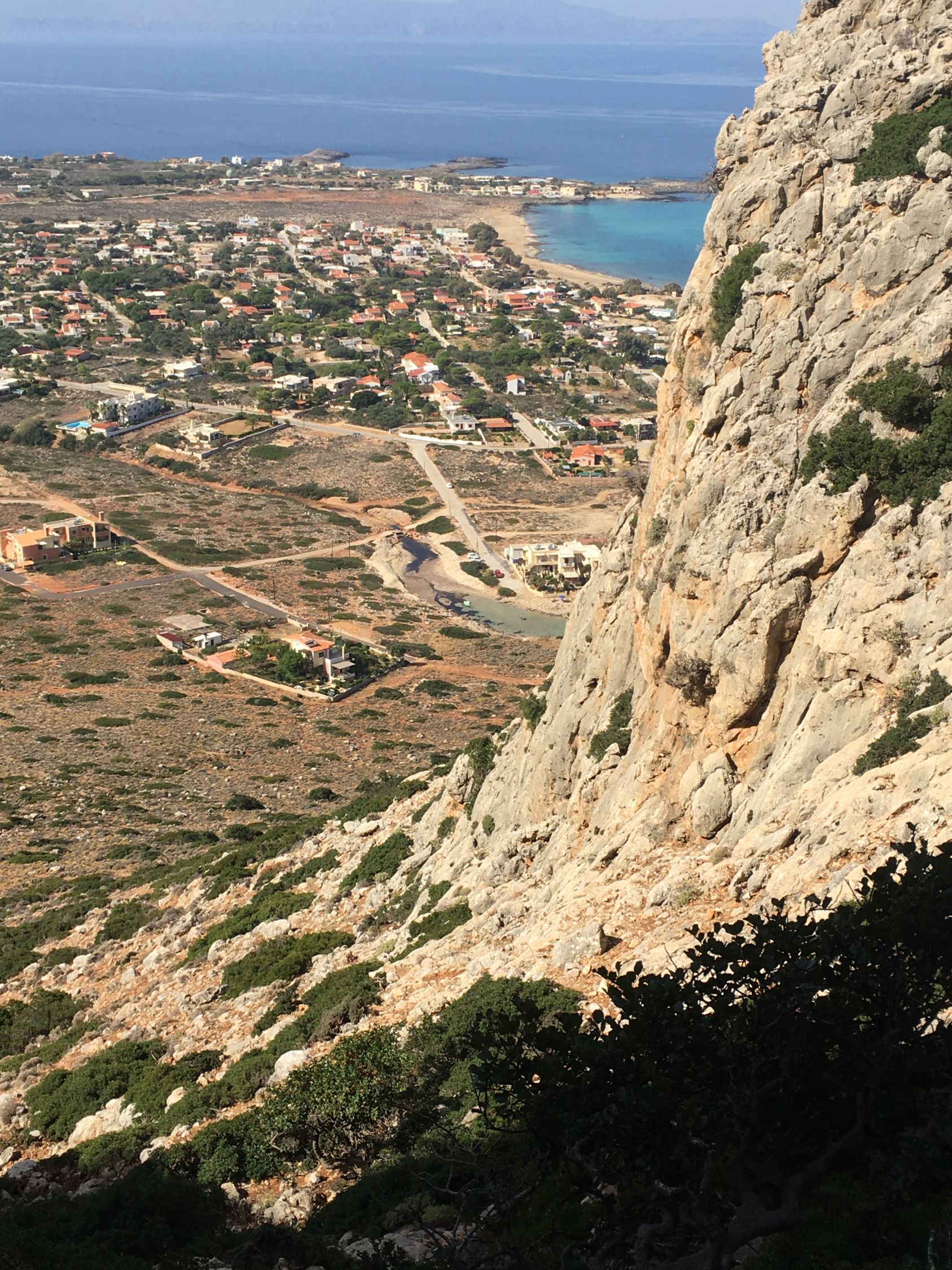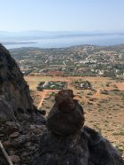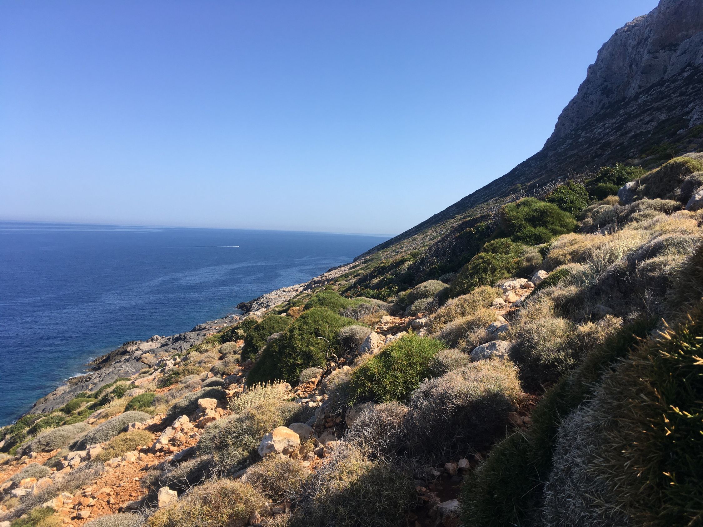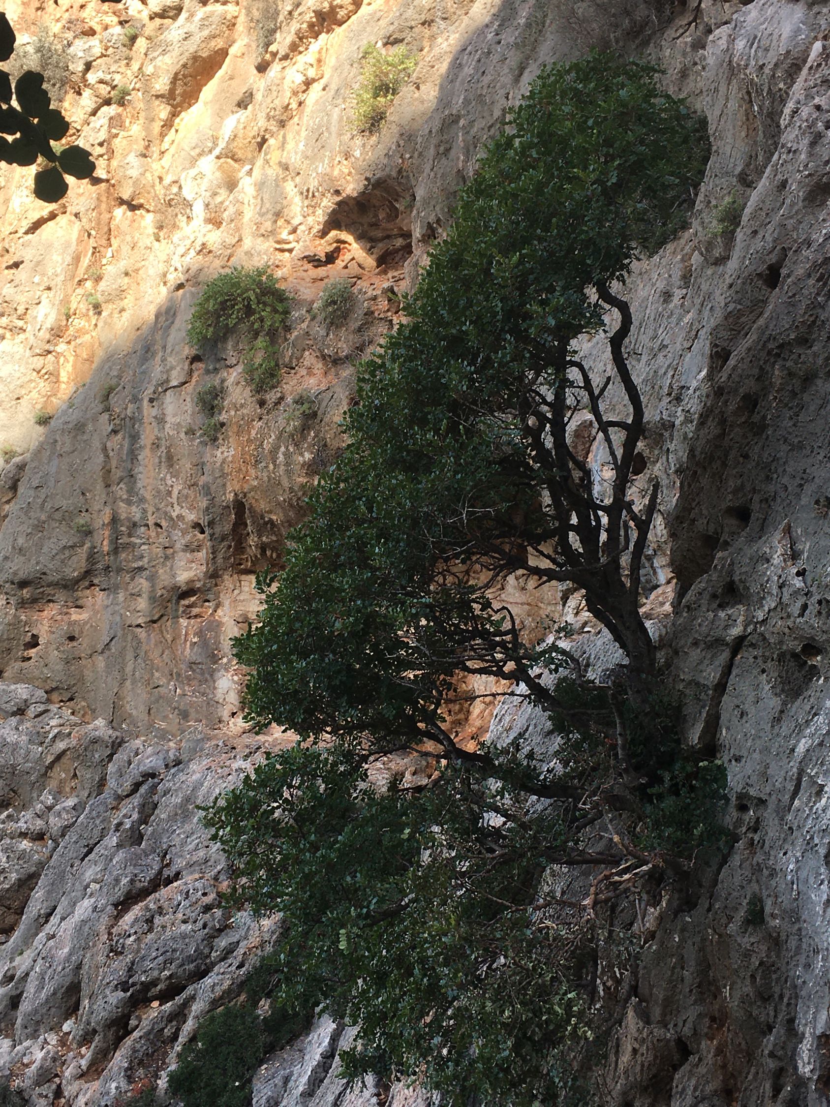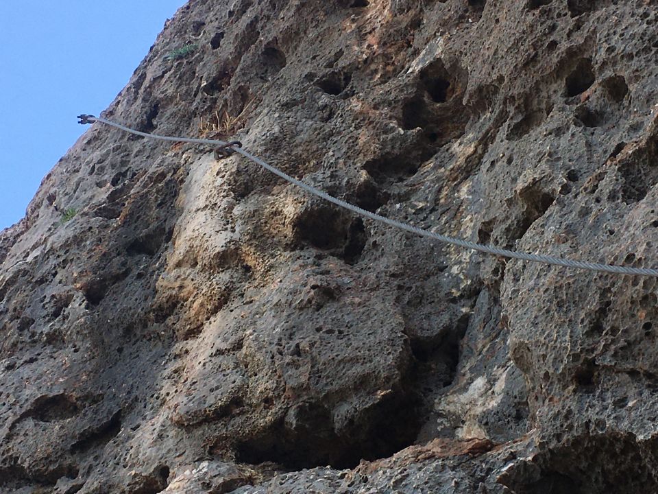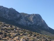Start Stavros Beach 10 Uhr, windstill, 20 Grad. Im Einschnitt zuerst mässig steil und ab 100 m Schatten. Eine kleine Schildkröte scheint sich hier verirrt zu haben. Bis Schlüsselstelle steiler und Schwierigkeit T4. Beim Stahlseil am Ende des Einschnittes war für mich Schluss, hatte keinen Klettergurt im Rucksack. Schade, auch heute kein Gipfelerlebnis.