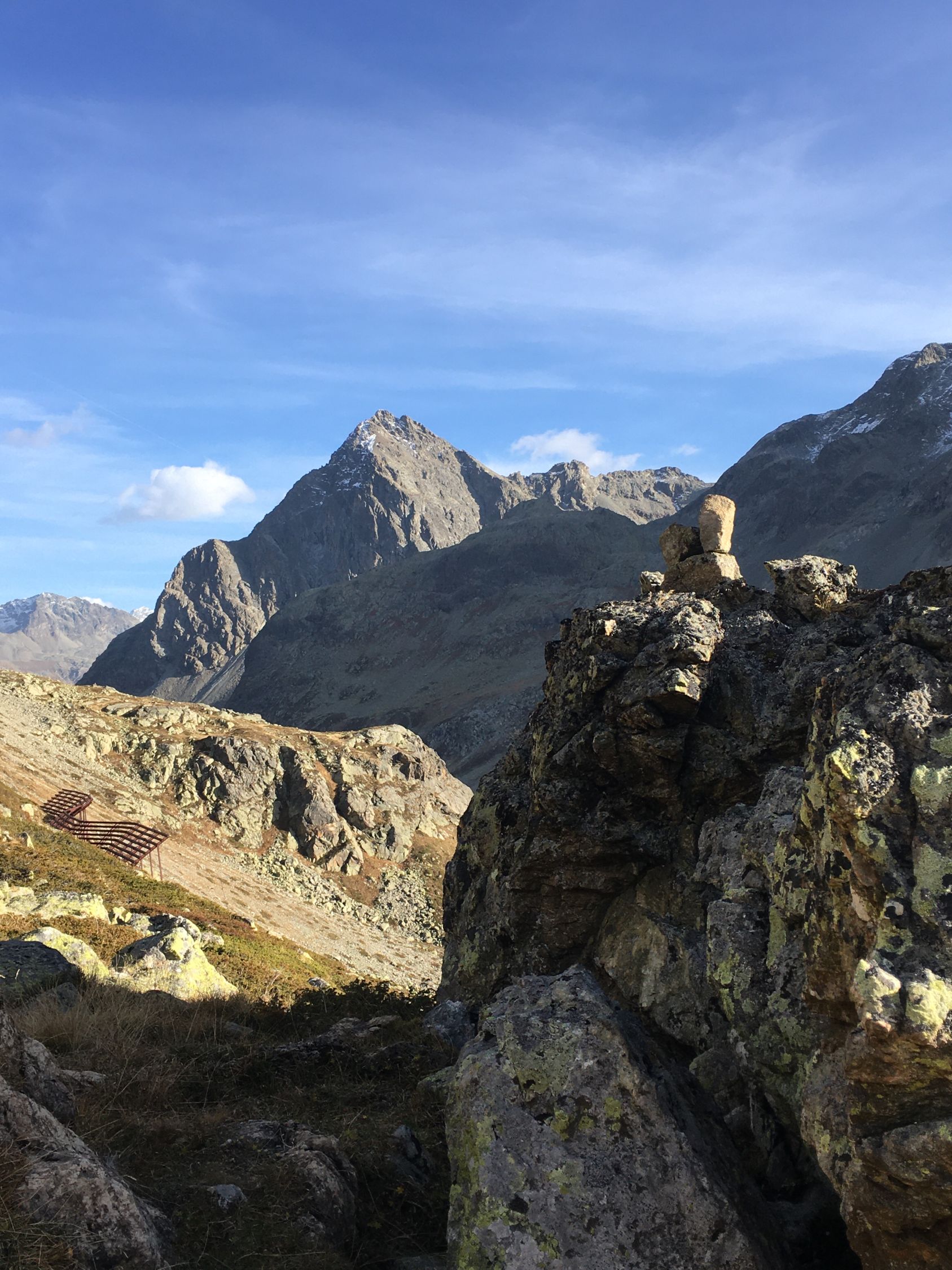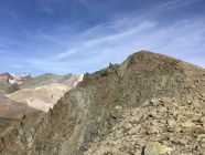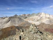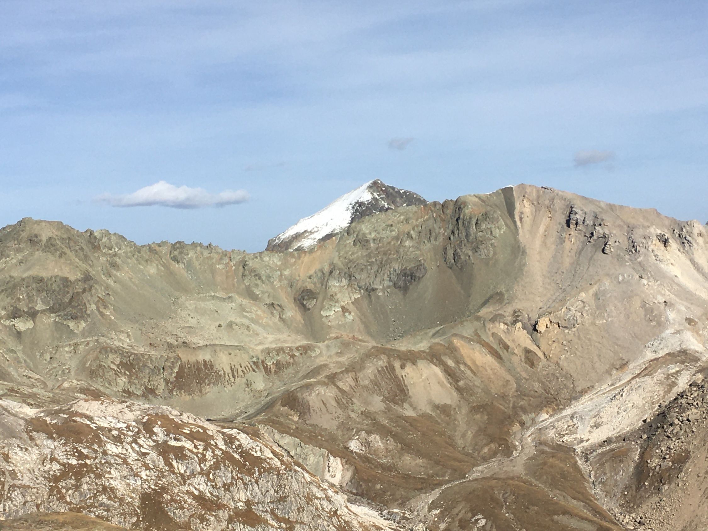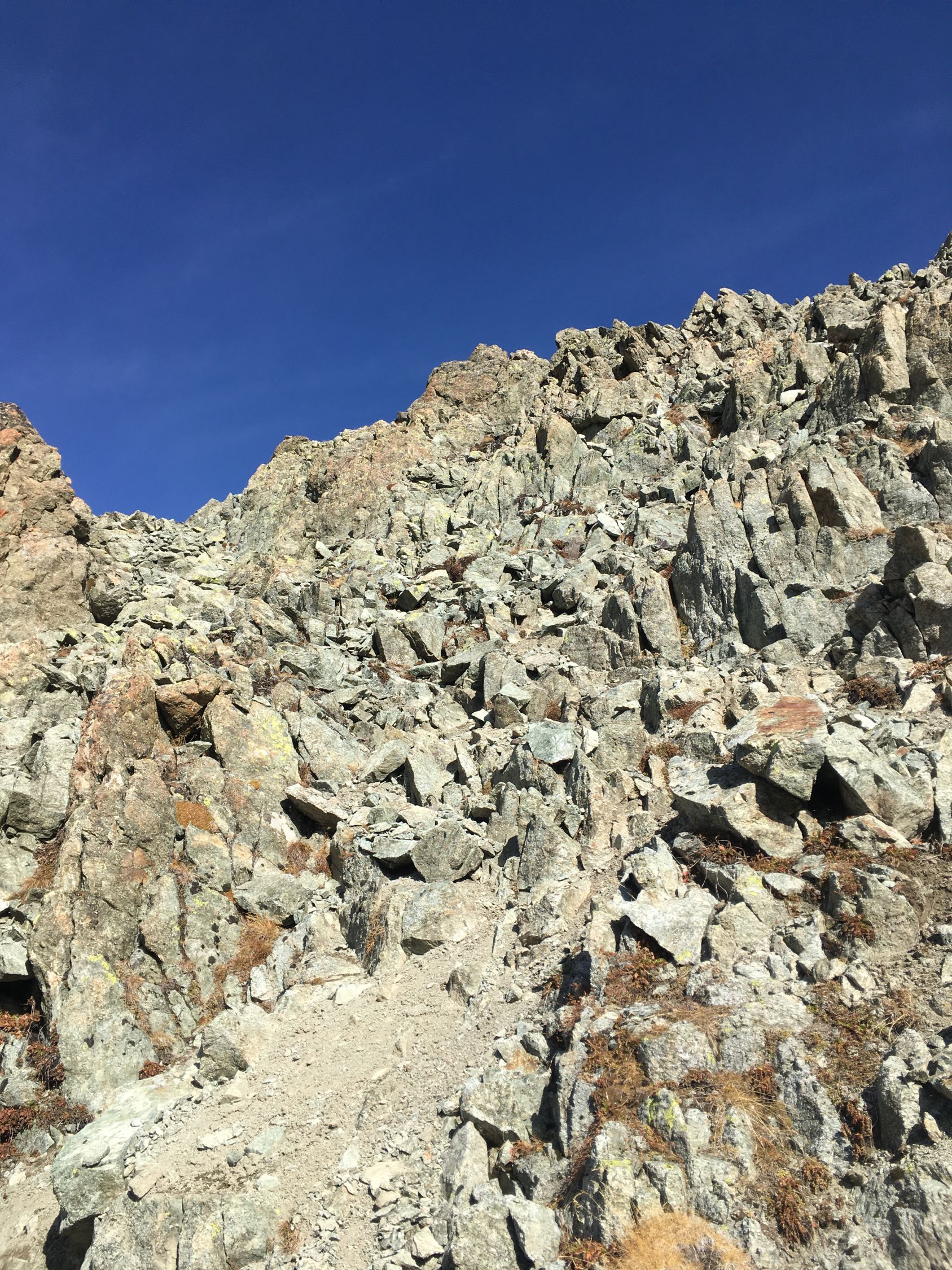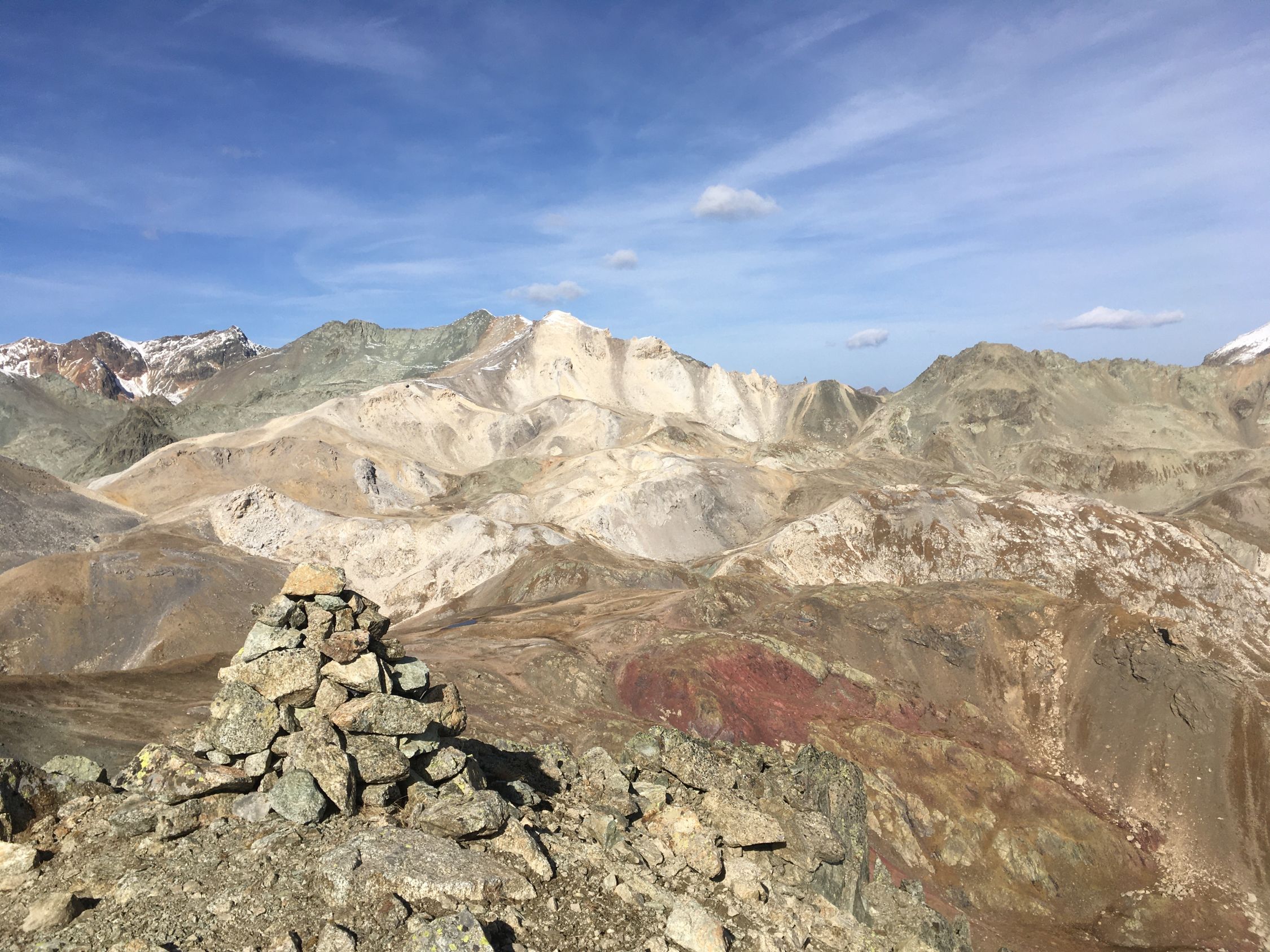 Start um 9 Uhr Parkplatz oberhalb La Veduta, 4 Grad, windstill. Ich wollte heute die neuerdings eingetragene Skitourenroute ausprobieren. Bin dann etwas mühsam unterhalb der Felsen unterhalb des Plateaus westlich des Südgipfels traversiert. Habe dann auch noch die Abzweigung nach links verpasst und merkte es erst als die Schwierigkeiten bald T6 erreichten. Schaute auf die Karte und musste wieder ein schönes Stück absteigen und dann die geröllige Traverse machen und kam dann endlich mühsam auf das Plateau. Ich kann diese Route auf keinen fall empfehlen, besser die beiden steilen Couloirs etwas weiter nördlich nehmen, ist einfacher. Im Winter ist diese Route nach meiner Einschätzung gefährlich, einfach zu steil. Auf dem Plateau weiter und die Südflanke rechts ausgesetzt umgangen und auf Geröll unschwierig zum Gipfel. Für den Abstieg bin ich dann direkt die Südflanke runter und das erste Couloir war ganz ordentlich. Nun weiter etwa wie Aufstieg. Um die Felswand unterhalb des Plateaus viel loses Geröll!