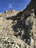 Bleibt gut, Tour nur bei trockenen Verhältnissen unternehmen. Neben dem ersten steilen Couloir kann man auch rechts davon aufsteigen, vermutlich T5?