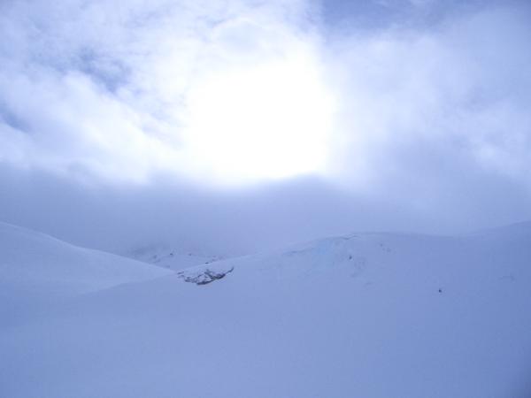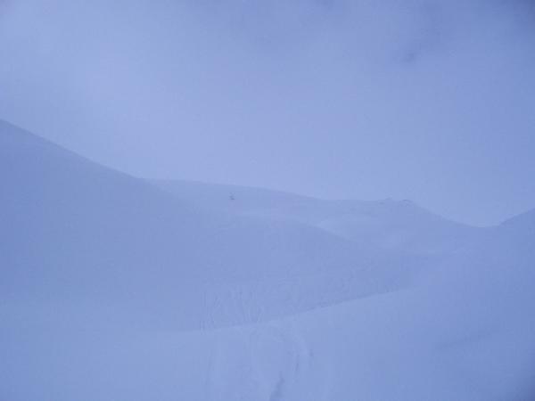 Tourstart bei leichtem Schneefall und tiefen Wolken; Temperaturen sehr warm; bis zum Talende war es naturgemäß kein Problem die Route zu finden; ab dem Steilanstieg uf den Bender jedoch kaum die Hand vor Augen zu sehen, entsprechend Orientierung nicht ganz einfach; zwischendurch 15-minütiges Sonnenfenster, das half die Route etwas zu korrigieren; Schnee herrlich, durchgehend Pulver, nur an wenigen Stellen Deckel; Abfahrtsvergnügen allerdings im oberen Teil der Tour sichtbedingt etwas getrübt, es war dort nötig, entlang der Aufstiegsspur abzufahren, um sich ausreichend zu orientieren.