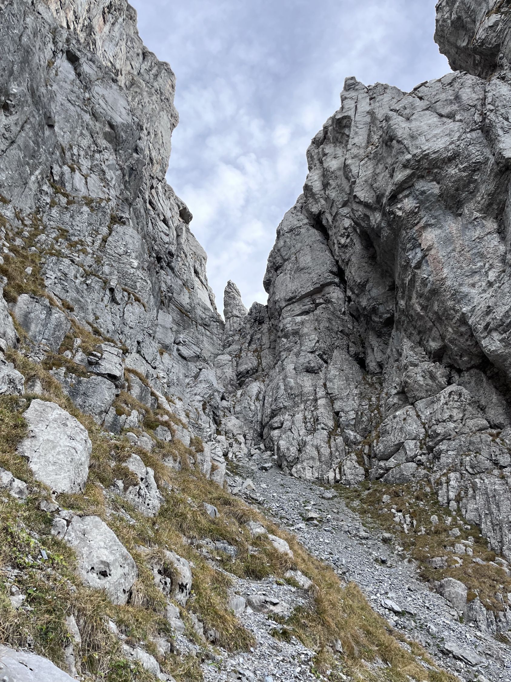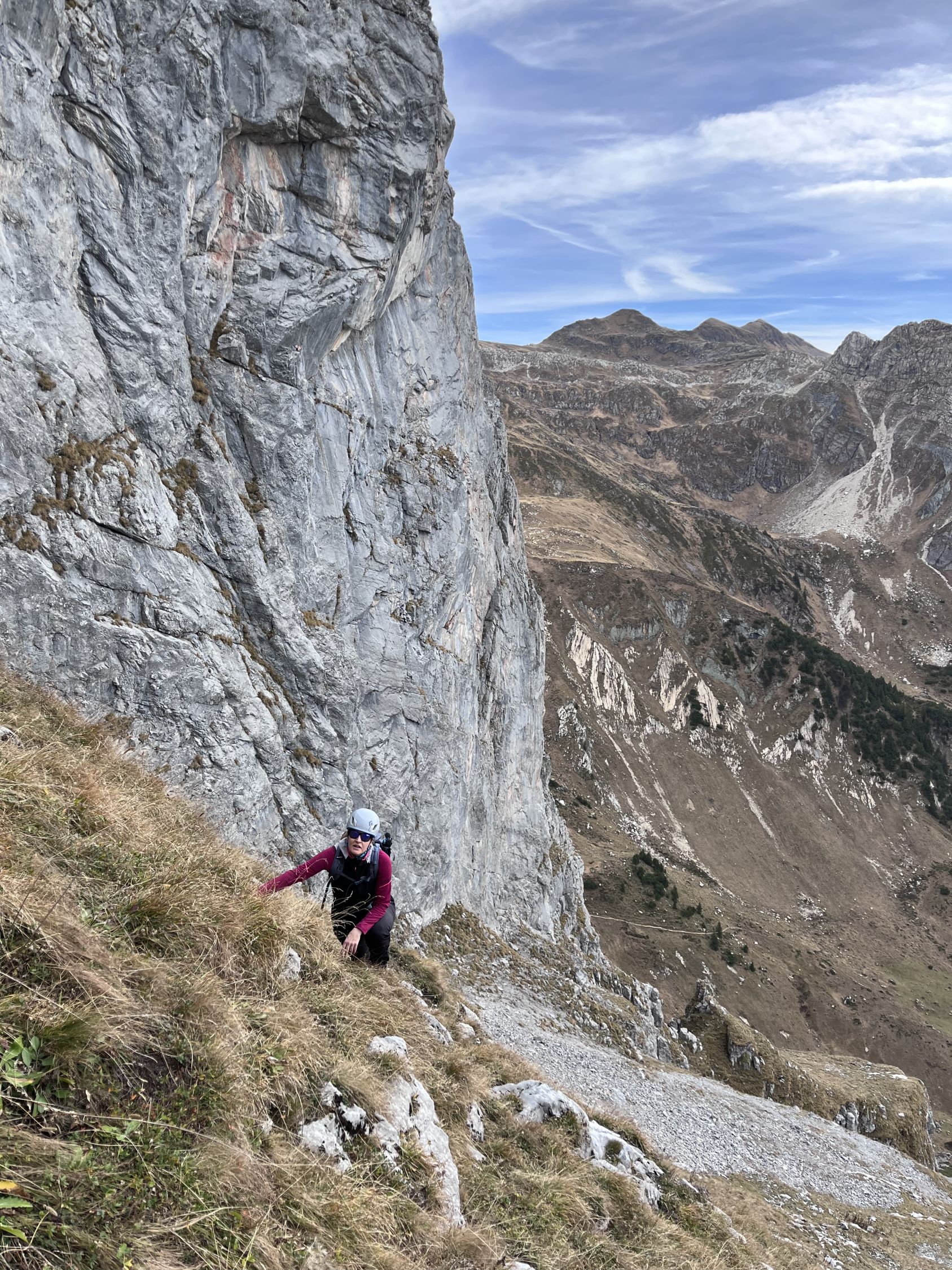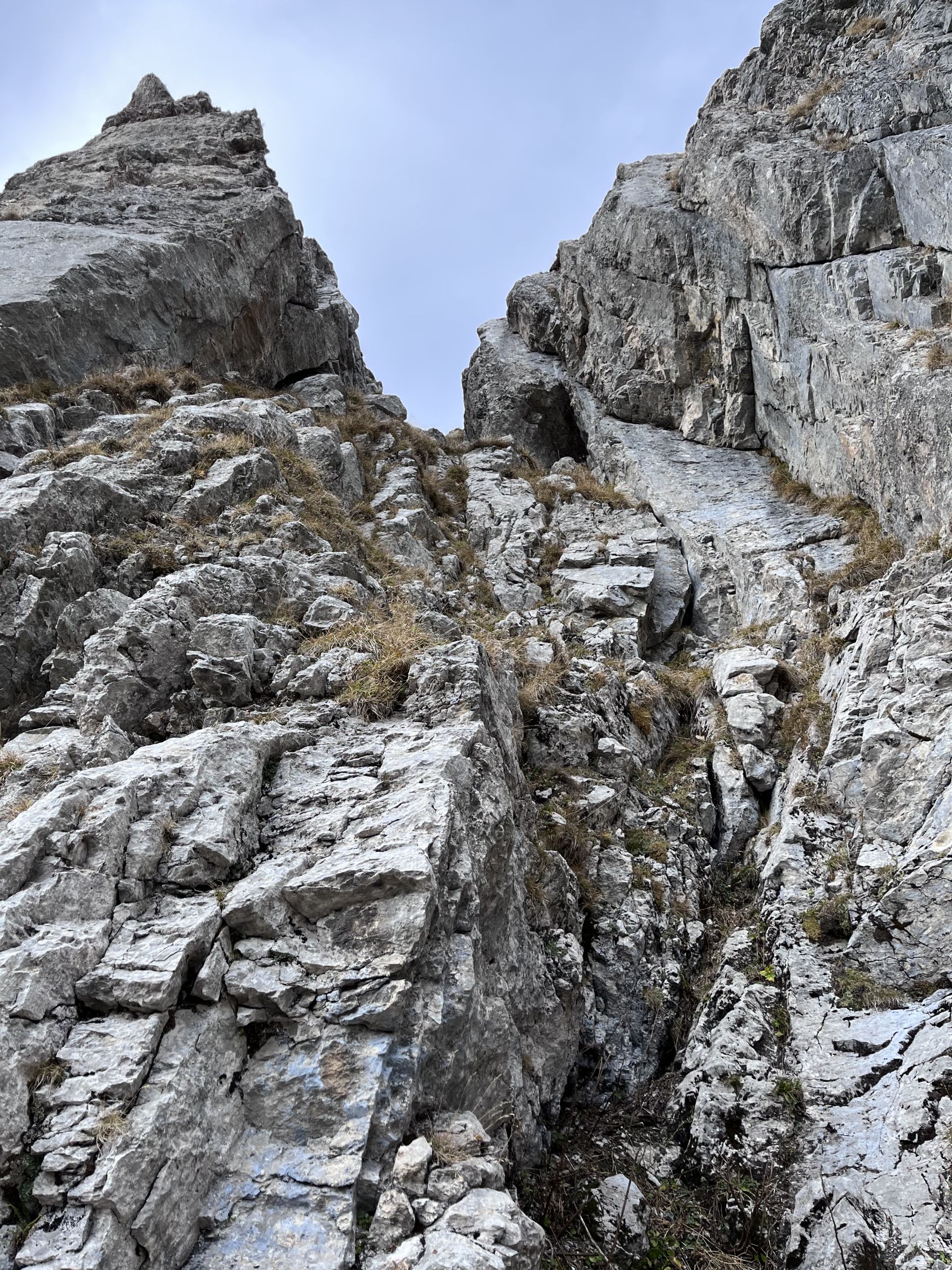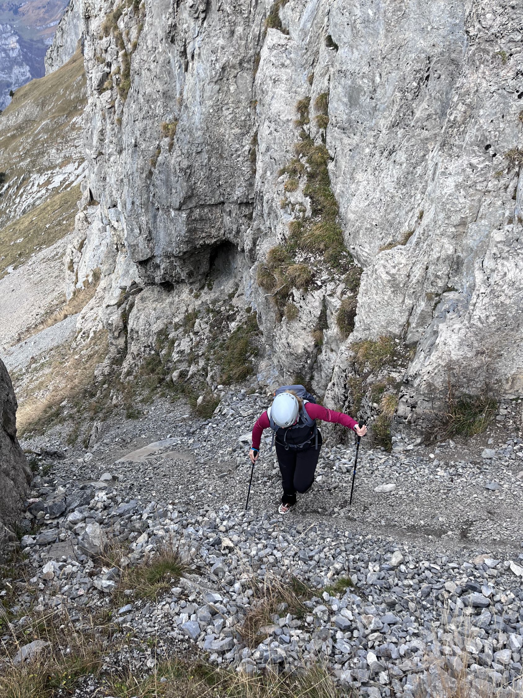 Die gesamte Route ist trocken und sehr gut zu gehen, klettern. Auf lose Steine achten.