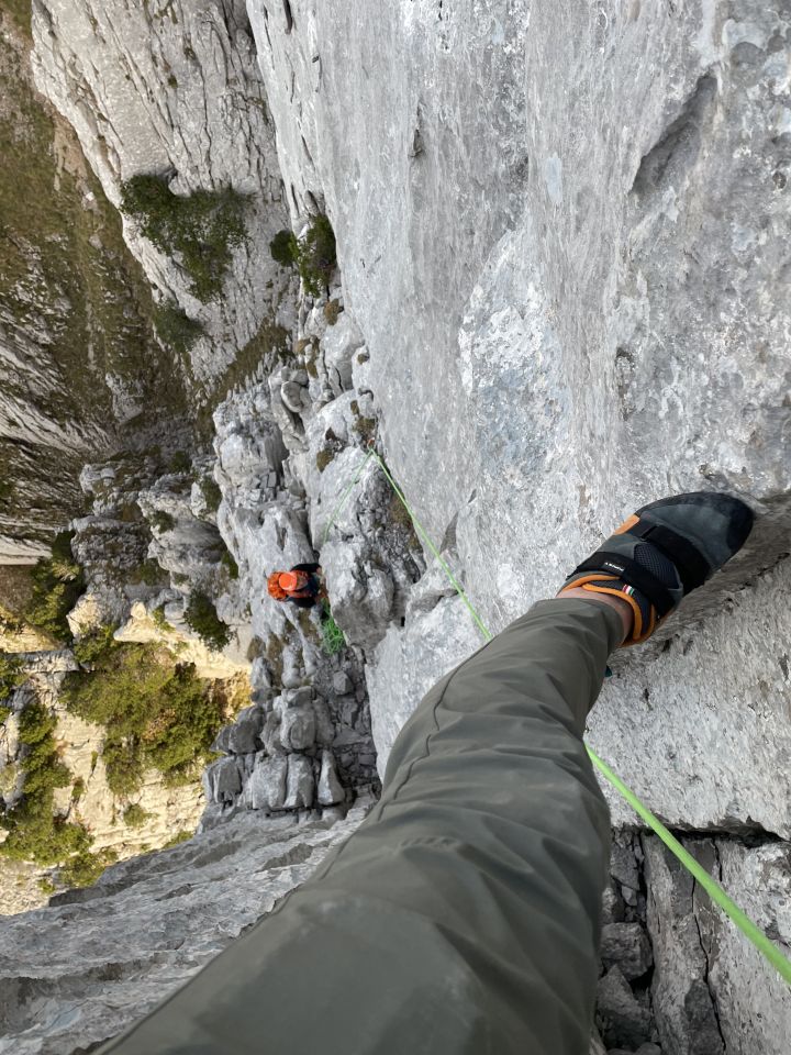 Schöne Kletterei - in der Schlüsselstelle sehr gut abgesichert jedoch schon ziemlich speckig. Ansonsten überwiegend guter Fels.