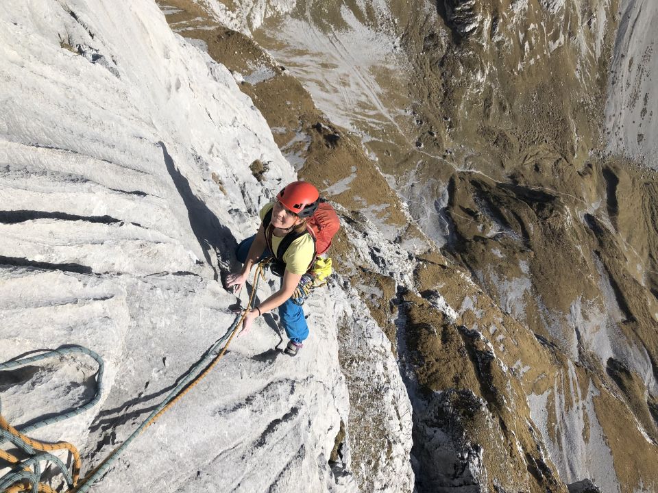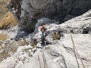 Was unbedingt noch zu beachten ist: Im unteren Teil sind die SL oftmals länger als 50m. D.h. man muss entweder ein paar Meter parallel gehen, oder dann einen der zahlreichen Zwischenstände nehmen, was aber wiederum mehr Zeit in Anspruch nimmt. Für das Abseilen sind deshalb zwingend 55m Seile notwendig, wie im Plaisir Ost auch aufgeführt!