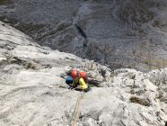 Super Verhältnisse zum Klettern. Etwa 3 Meter in der dritten SL (5c) sind feucht.
