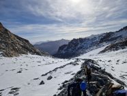 Sehr viel Schnee auf dem Gletscher. Der Schnee trägt nur leichte Leute.