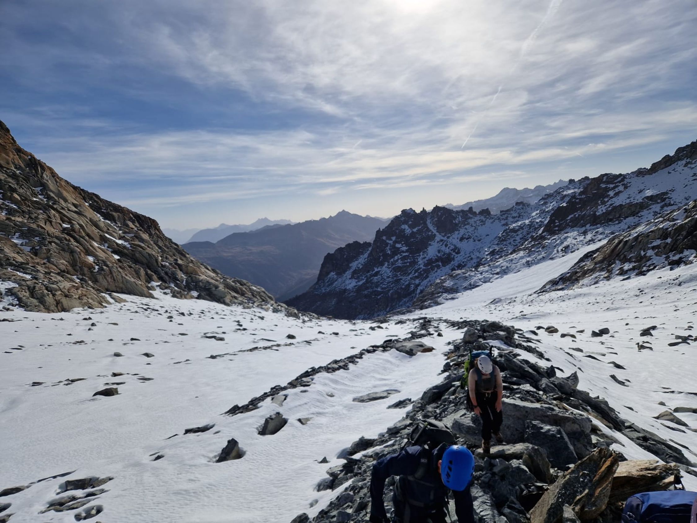 Achtung! Wir hatten im Abstieg unterhalb des Gletschorns wegen Steinmännern eine andere Route genommen und hatten prombt einen Spaltensturz ins leere. Sind danach zurück auf die Moräne und haben den Gletscher weiter unten verlassen.
