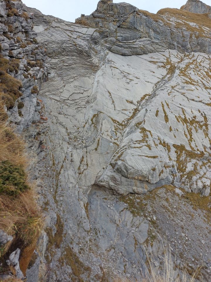 Diese Tour ist ohne die abgebrachten Hilfsmittel bei der Platte, unten im Spalt und beim Absatz nur mit einer Seilsicherung «vernünftig» machbar. Als Ausrüstung ist ein Helm indispensable.