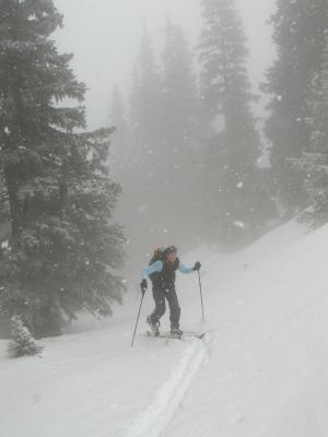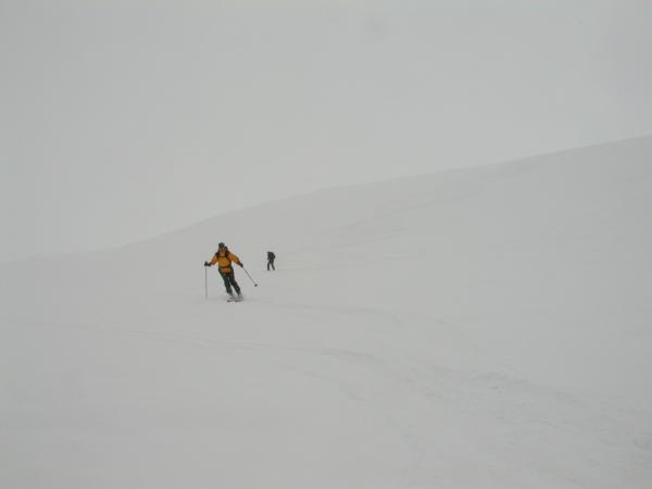 Ab 2000 müM mit Kompass und GPS unterwegs, da stockdicker Nebel (aber der Schnee wäre sehr gut . . .)