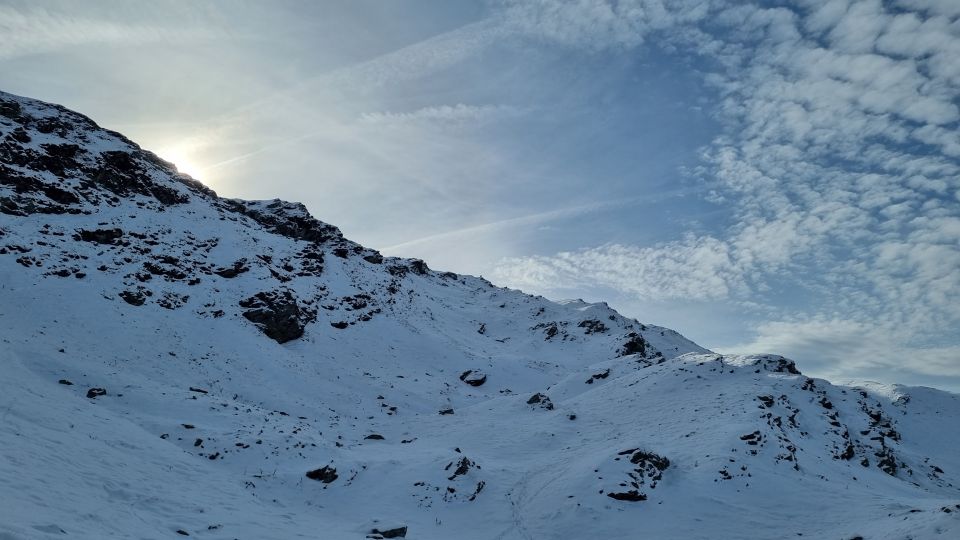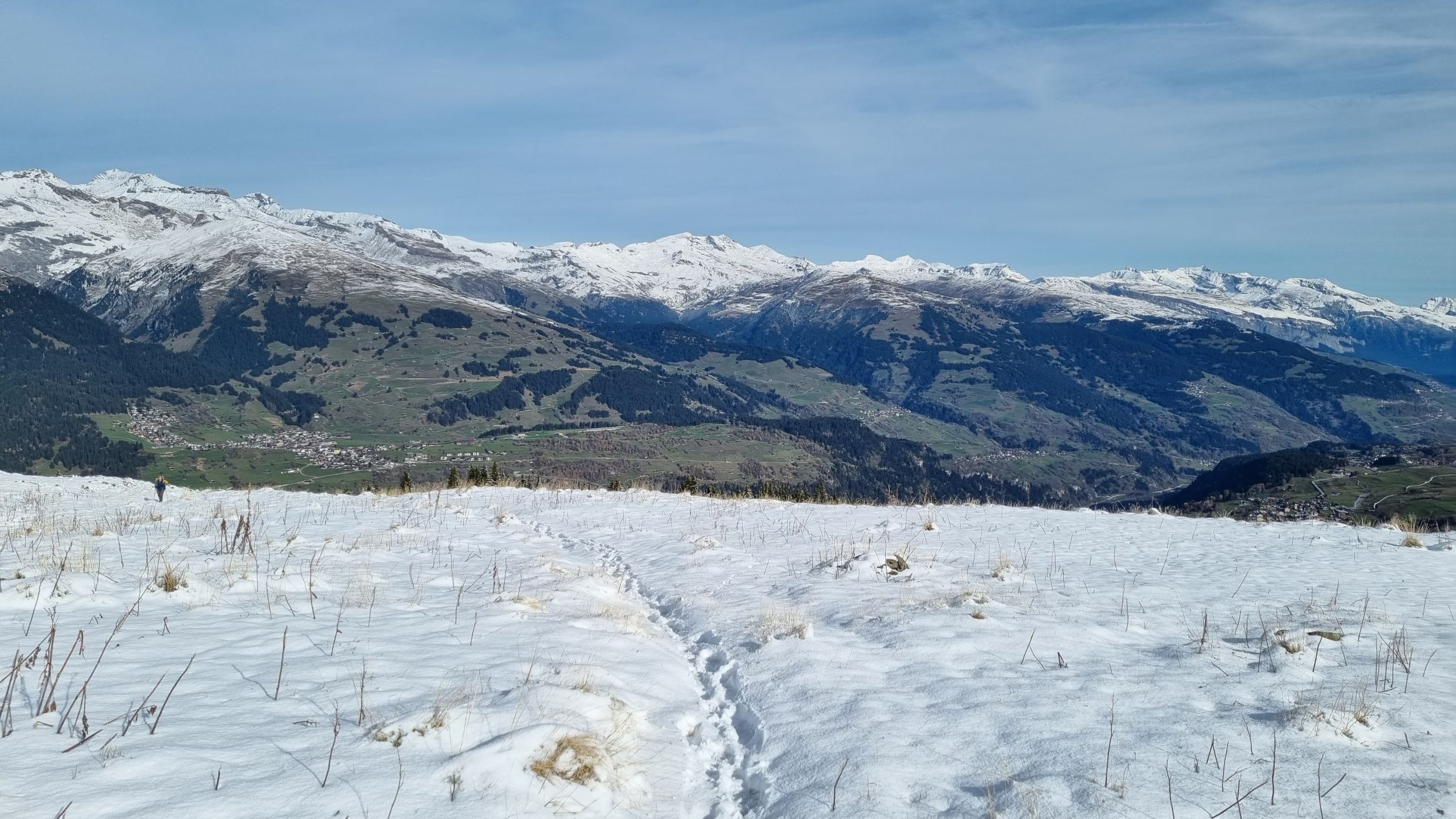 Bis zur Vorderalp im Schnee ohne Schneeschuhe. Ab ca 2000m mit Schneeschuhen in lockerem Pulver. Steine und Sträucher noch nicht komplett überdeckt.