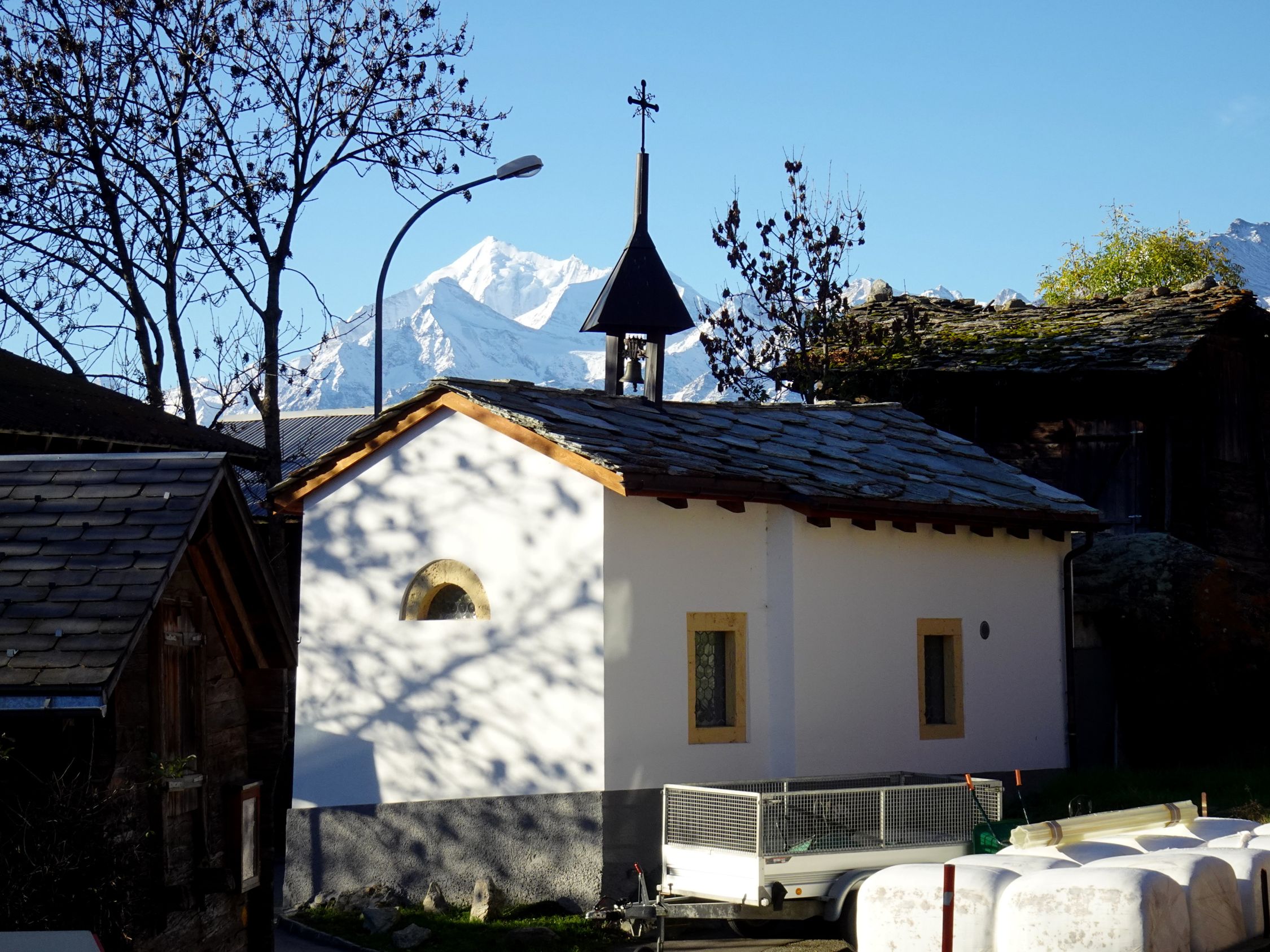 Ehre wem Ehre gebührt: Wandert man im Wallis vom Weiler zur Alp und zum Dorf und schaut sich um, entdeckt man manches Juwel. Nicht nur alte Speicher und Stafel, sondern die schöne, alte Kapellen . und hier kommt mein Lob: Dies muss man den Wallisern lassen: Sie hüten und pflegen ihre Kapellen wie ein Schatz. Sie sind meistens sehr gut gepflegt und wer eine kleine Kerze zur Andacht anzünden will, kann es problemlos machen, Zündhölzchen sind meistens vorhanden.. Dazu ist ein kleine Kassette eingemauert damit man den Obolus an den Unkosten spenden kann.
