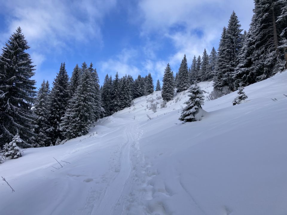 Eigentlich müsste es aufgrund der allgemein mageren Schneemenge ein machbar geben. Der Schnee von letzter Woche hat sich aber gut gesetzt und bildet eine gute Grundlage für den neuen Schnee der letzten Tage. Insofern kann man ohne Feindkontakt abfahren. Es war heute besser als erwartet. Zweimal von Gradgehren und dann noch einmal ins Bolgental und wieder hoch. Sonnseitig war der Schnee bei der letzten Abfahrt schon schwer geworden, da wird es morgen vermutlich einen Deckel geben. Schattseitig sollte es noch gut bleiben.