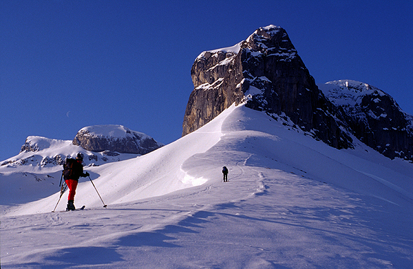 Abfahrt in etwa der Aufstiegsspur entlang zurück.