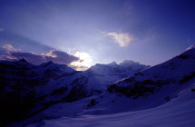 Ab Berghotel Griesalp noch praktisch geschlossene Schneedecke, vermochte in der Nacht bis auf 1600 m hinauf oberflächlich nicht zu gefrieren. Ab 1900m tragfähig und gespurt bis auf Gipfel. Abfahrt: Oberste Mulde oberhalb Ryssends Hore noch Pulverschnee, darunter bis auf 1900m tragender Hartschnee mit "Sulzgarnitur" à l'heure ( bei rechtzeitiger Abfahrt traumhaft, wer zu spät, ist selber schuld).