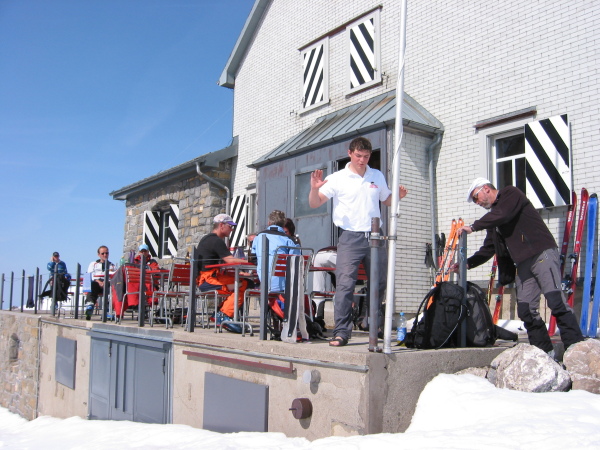 Mit der ersten Seilbahn (8.oo Uhr) auf den Säntis und Abfahrt in die Meglisalp (1517m); kurzer Aufstieg auf den Rotsteinpass (2124m); Trinkpause im Berggasthaus und danach Abfahrt ins Älpli.