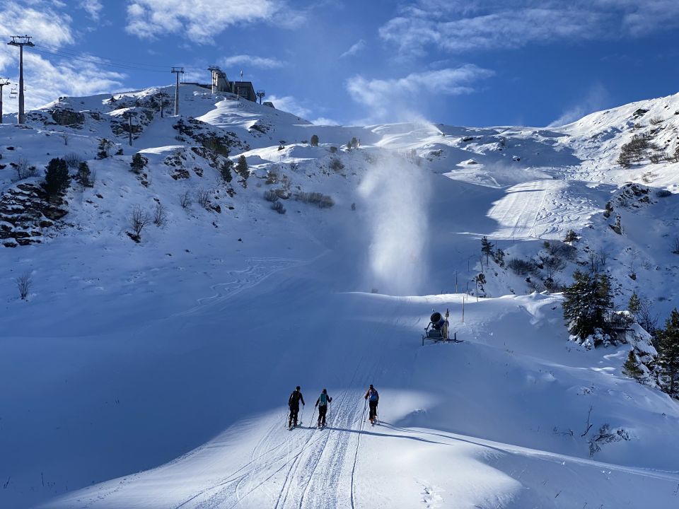 Ohne Seilbahnbetrieb ist der Flumserberg ideal für den Einstieg in die Saison geeignet. Die Piste wird schon grosszügig beschneit und ist im oberen Abschnitt bereits präpariert. Abseits gibt es noch Gelegenheit, den Pulverschnee zu geniessen.