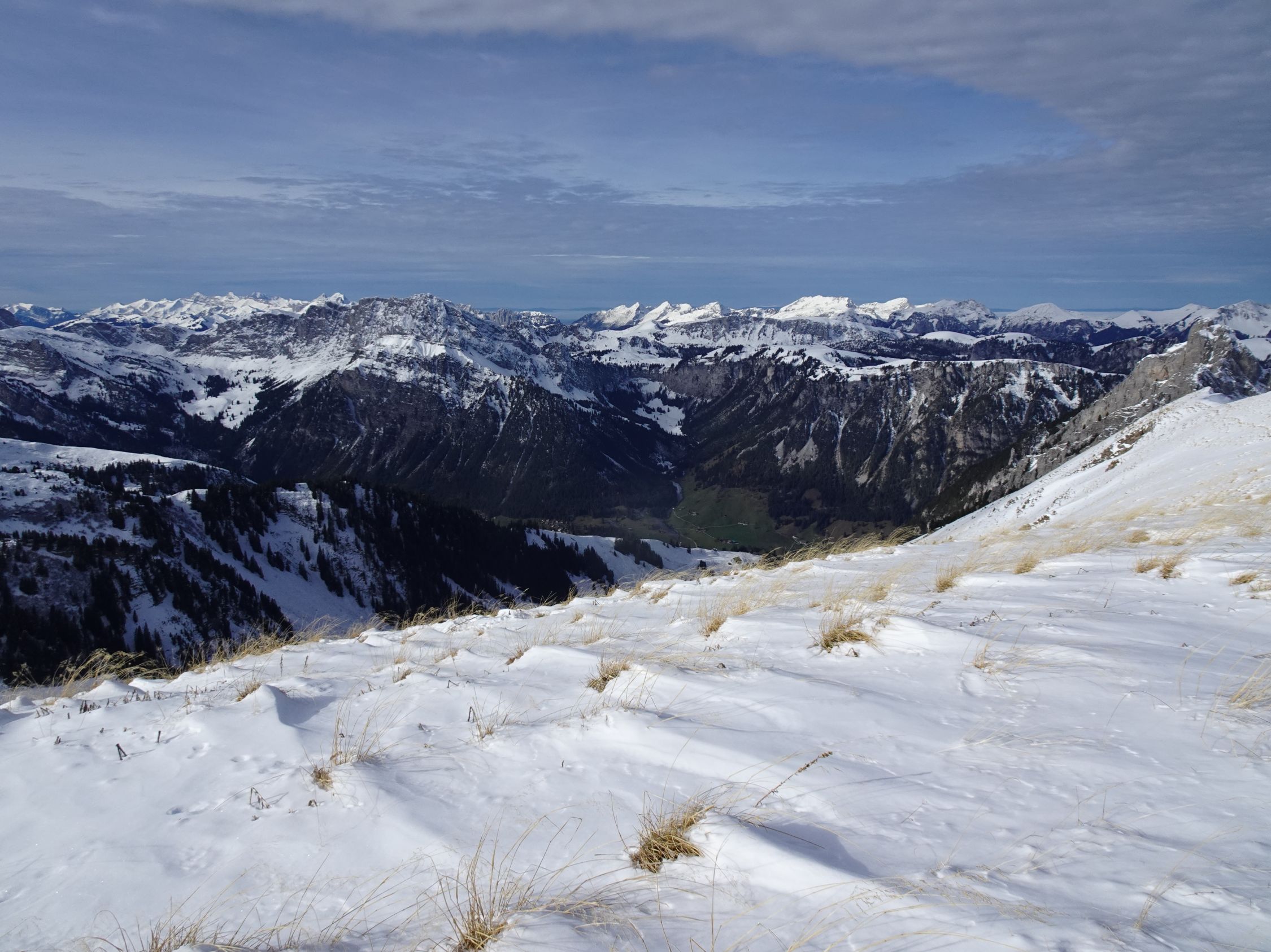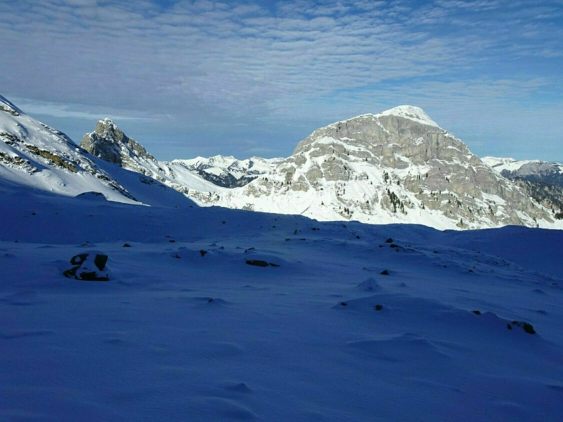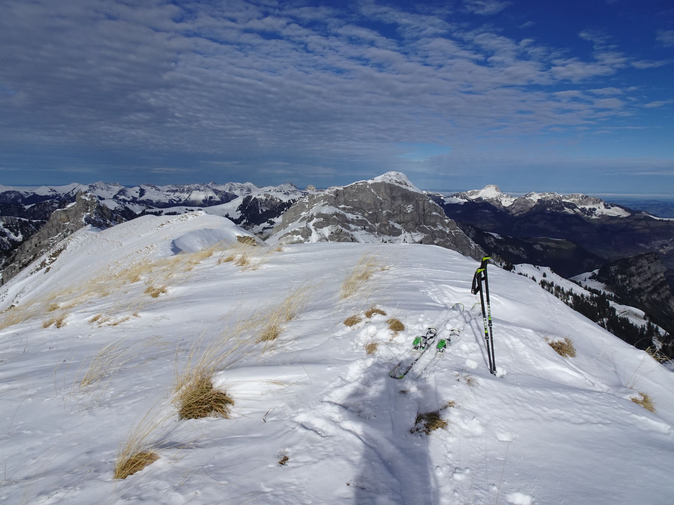 Heute ist die Tour ab Ramse 1441m mit knapp genügend Schnee mit 15cm Schnee auf der Fahrstrasse nach Abendmatte möglich für Aufstieg und Abfahrt.