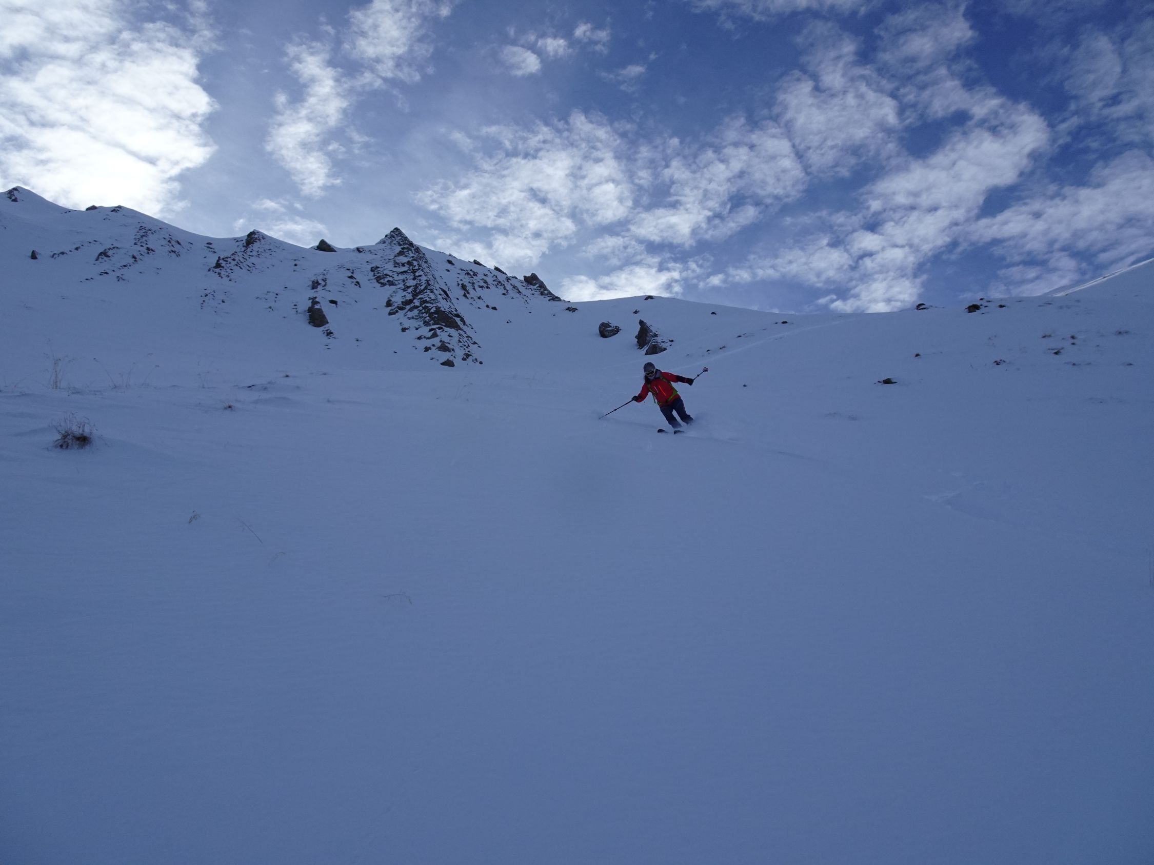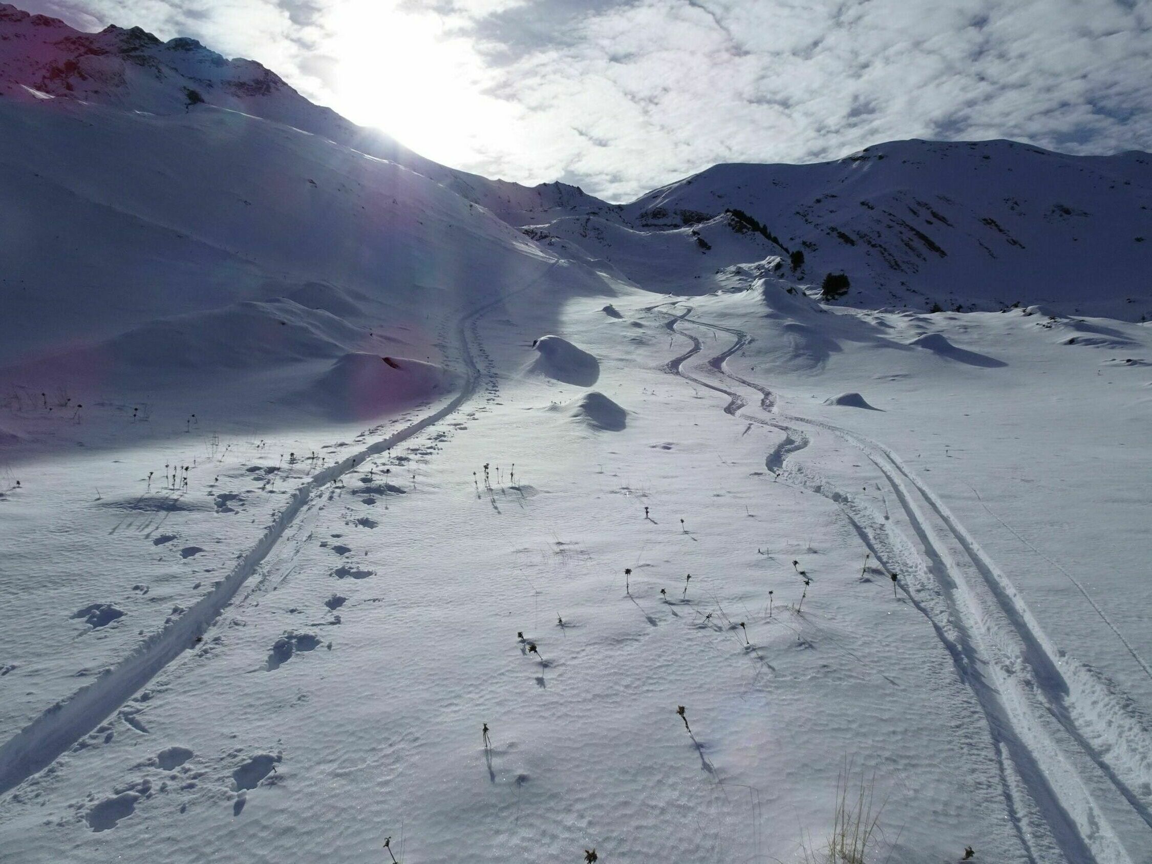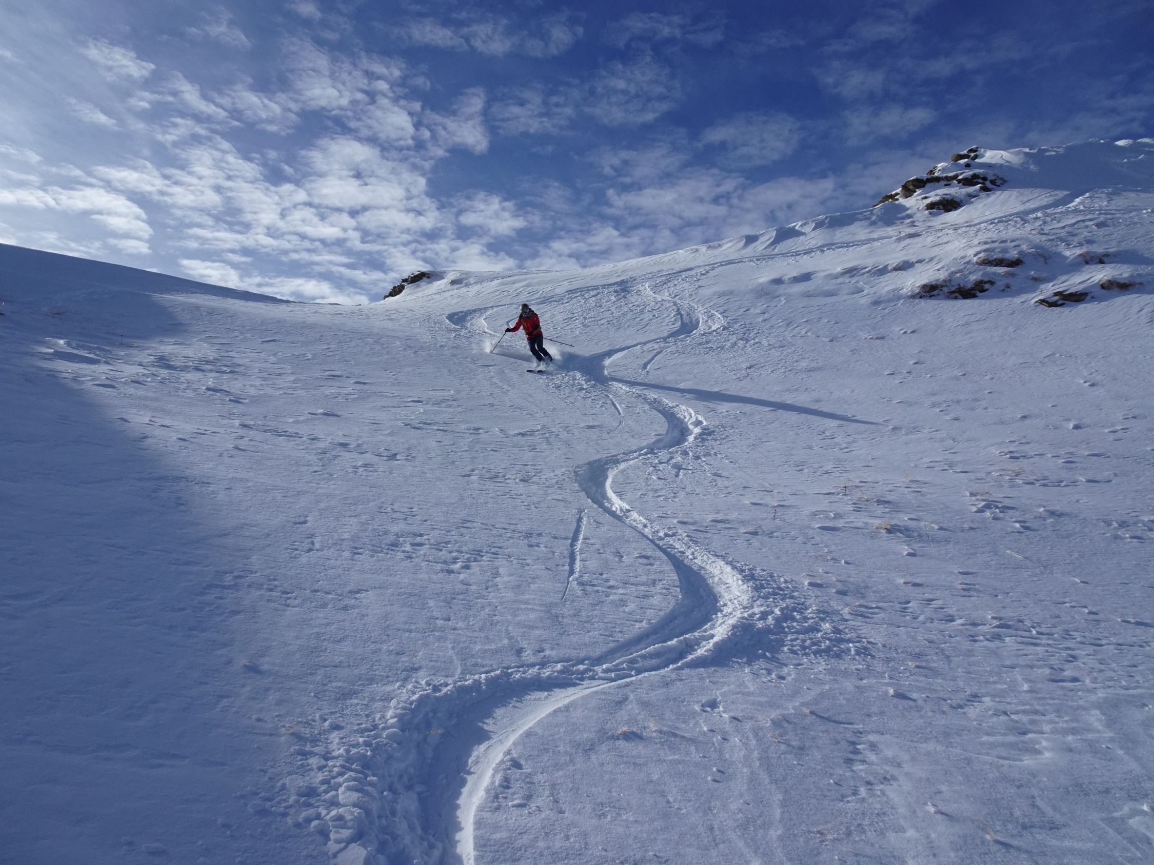 Darüber hat es 20-40cm Schnee teils Pulver ohne Unterlage, teils kurz Presspulver.