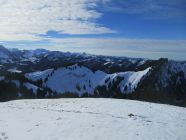 Das Wetter war besser, als vorhergesagt. Tiptop bis in den späten Nachmittag, wo meine Wanderung gegen 16 Uhr in Weissbad ihr Ende fand. Den ganzen Tag über Sonnenschein, die paar Hochwolkenabdeckungen waren wirklich vernachlässigbar. Gegen 12 Uhr während der Gipfelrast war es zwar wunderbar sonnig, aber sehr frisch mit Wind. Etwa um 13.30 Uhr hatte ich das Gefühl, als sei es schlagartig wärmer geworden. Von da an weiter in mildem Klima. Erst, als die Sonne weg war, wurde die Luft wieder kalt.