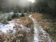 Wanderung in weiß-grün. Ab de Schwägalp über den Kronberg-Gipfel bis nach der Scheidegg überwiegend weiß, danach mehrheitlich grün. Dabei dann oft auch aufgeweicht, also matschig. Andererseits ist die durchgehende Spur im Schnee öfter mal vereist. Dennoch war alles in bergfesten Wanderschuhen begehbar. Stöcke ebenfalls obligatorisch.