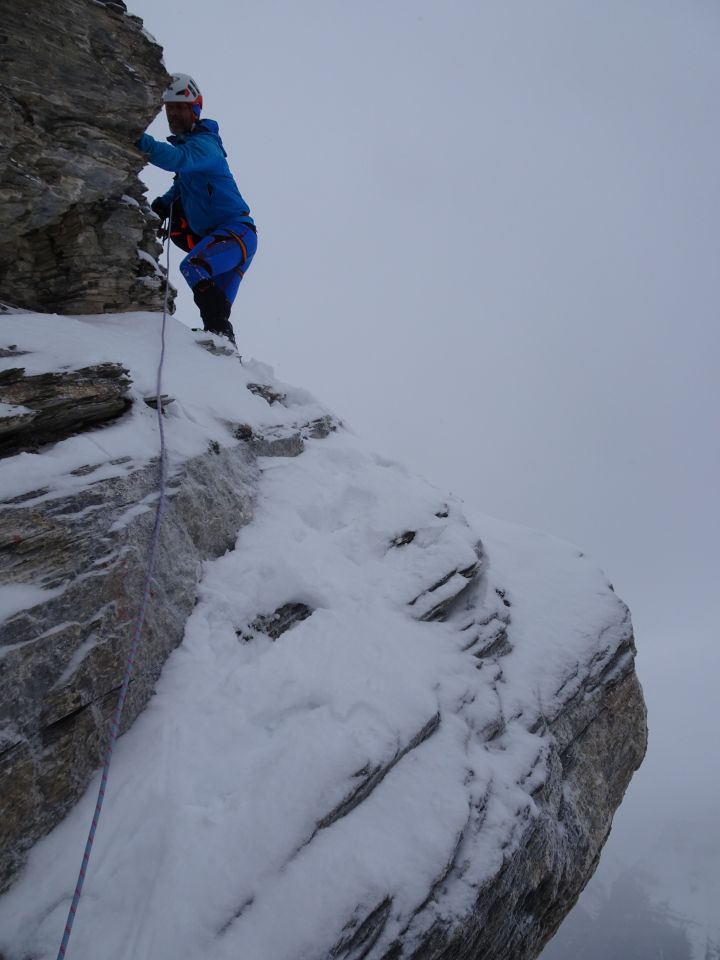 Ab Calandagipfel dann heavy Peeling in der Westseite auf dem Weg zum Dach. Erst ab dem Cafäraboden wurde der Wind wieder erträglicher.