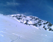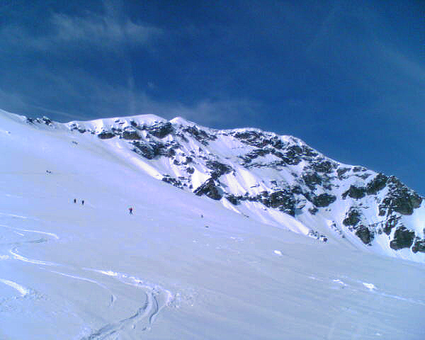 416,WS+ Start oberhalb Gruebe. Am "vordere Berg" vorbei und den "Biregrabe" empor. Leicht nach Osten ausholden über " i de Schufle" auf den Ostgrat. Auf dem Grat weiter und über die Wächte des Südgrats auf den Gipfel. Abfahrt bis unterhalb des Ostgrats der Aufstiegsspur entlang, dann rechts (östlich) ausholend über "hindre Berg", "Grod" zurück.