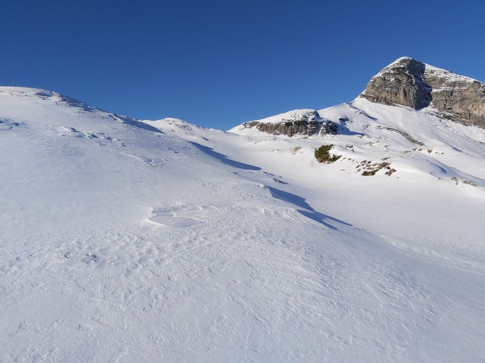 Die ideale Tour für heute, schönes Wetter, kurze (späte) Anreise, einmal sehr einsam, daher ein GUT, obwohl mit dem wenigen Schnee noch keine schönen Abfahrten möglich. (gut abfahren kann man aktuell in Ostschweiz/Vorarlberg nur in Skigebieten mit präparierten Pisten, mit viel mehr Hektik)