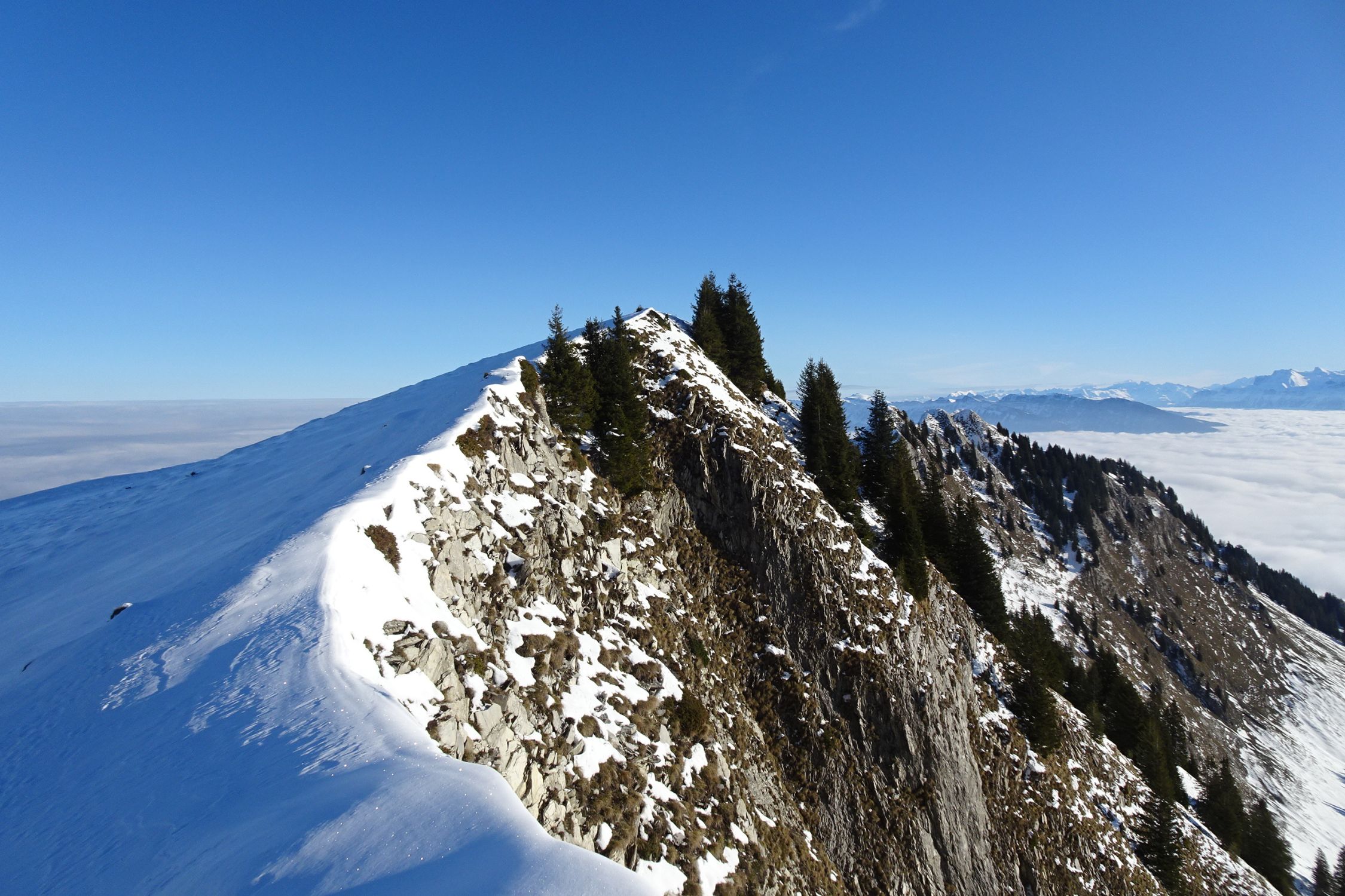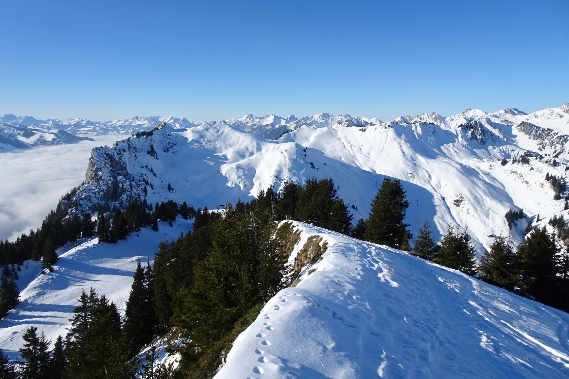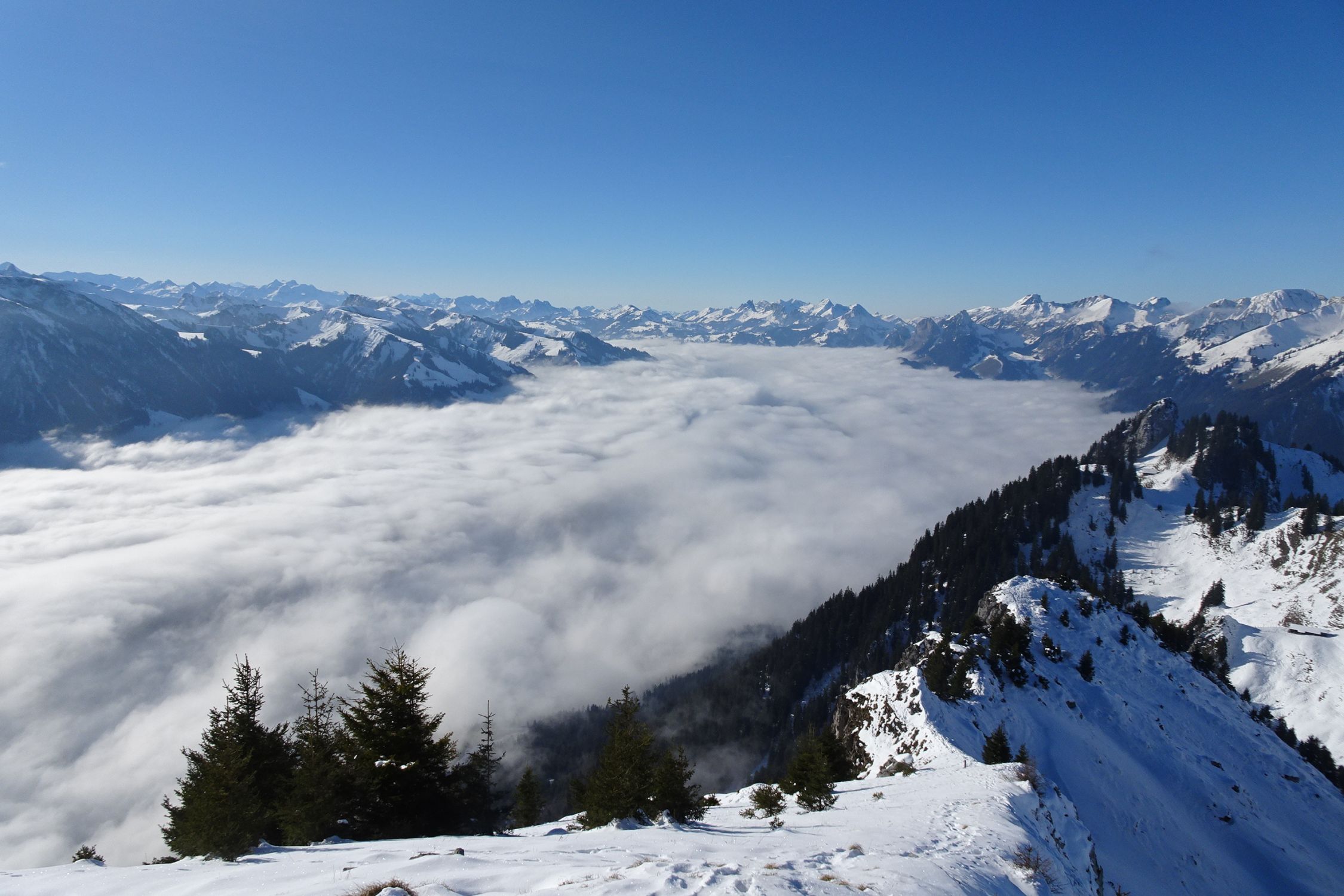 Ansonsten war's ein prächtiger Wintertag: stahlblauer Himmel, Nebelmeer, kaum Volk.