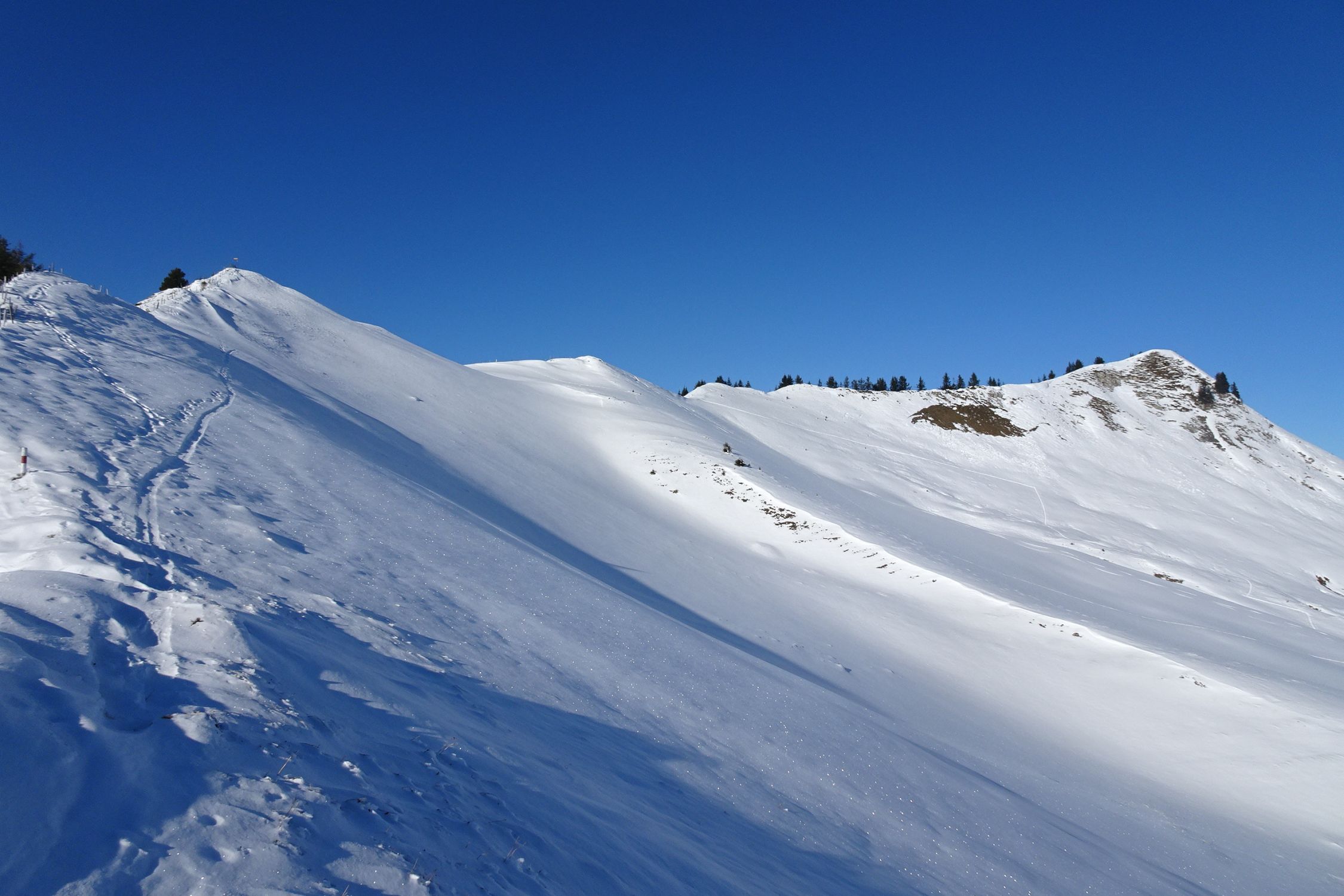 Die guten Nachrichten vorweg: Dank dem Ausgangspunkt auf 1600m liegt ab Start "genug" Schnee, die Ski musste ich nie tragen. Der Schnee ist fast durchgehend pulvrig. Schön zu fahren waren vor allem die Cheibehorn Nordflanke sowie die Ostflanke beim Pfaffli, dazu kurze Abschnitte am Laseberg.