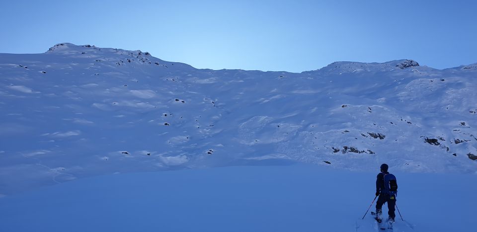 Es hat ca. 40 cm Neuschnee, der Schnee ist Top und die Steine sind nah. Viele ältere Lawinenabgänge ab Stelliboden. Einige Wummgeräusche beim hoch gehen, schattseitig grössere Steilhänge meiden