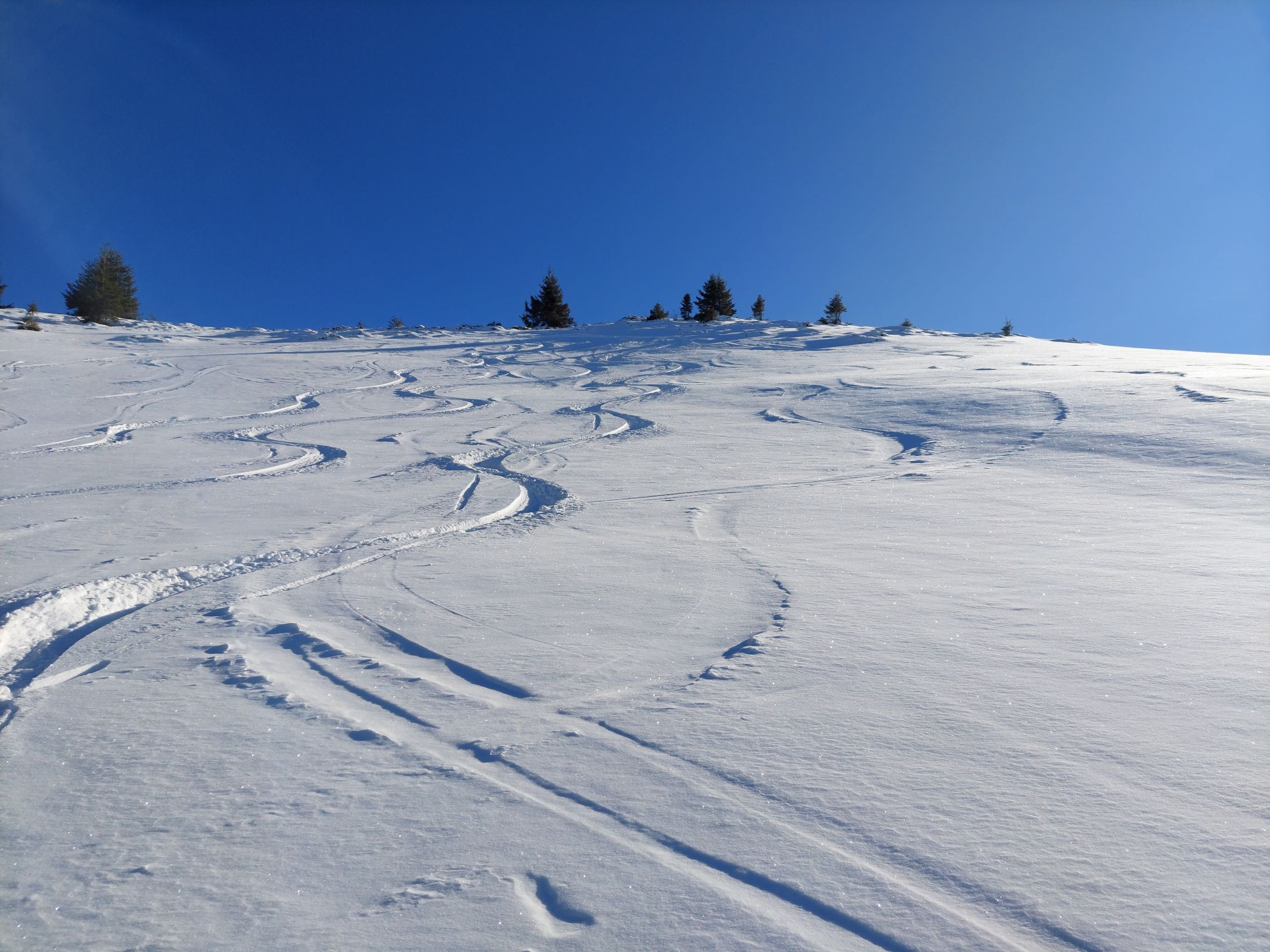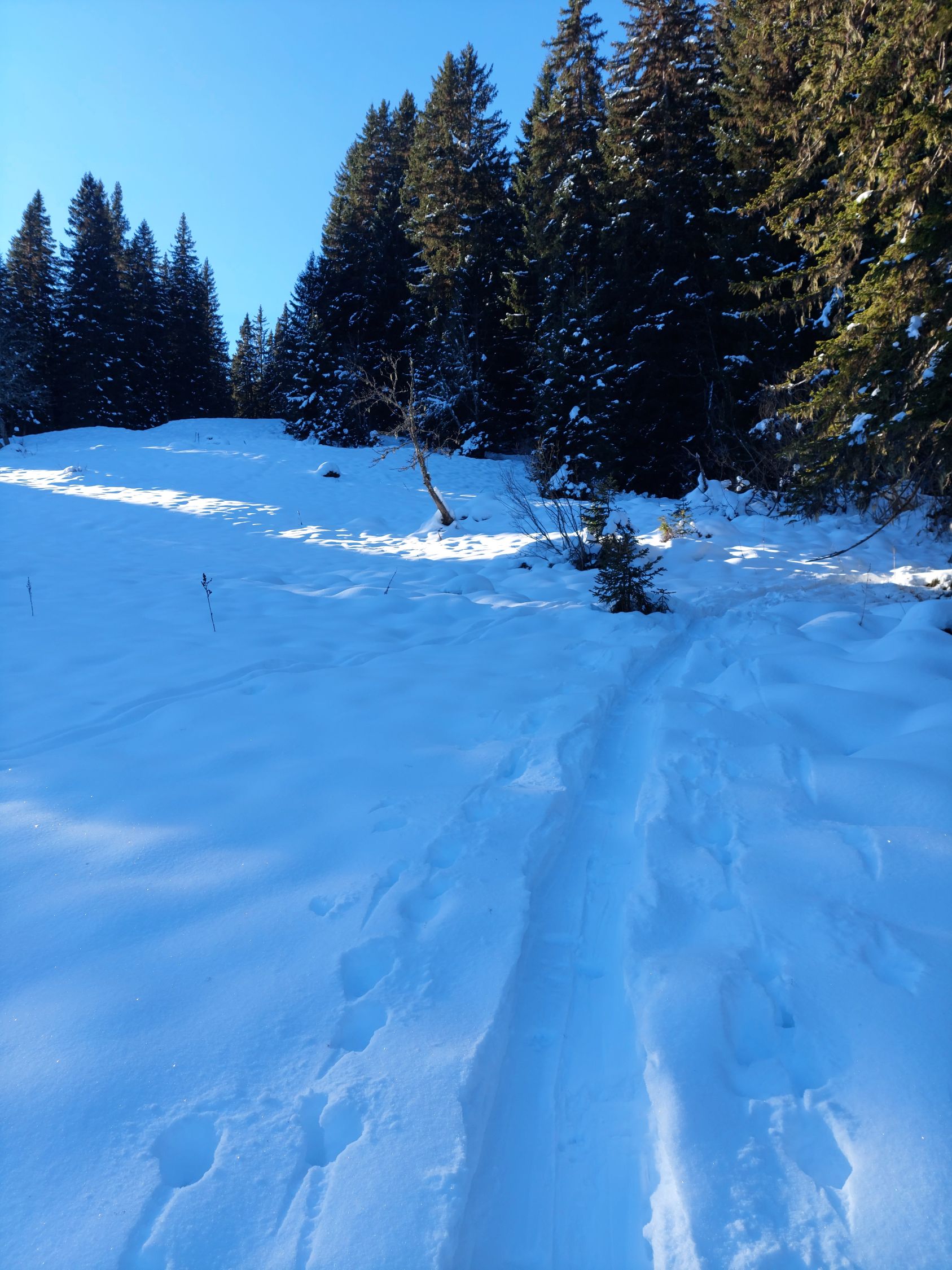 Hoch auf dem Wanderweg mit Ski ist machbar. Abeärts eher nicht. Ab dem zweiten Brätliplatz genügend Schnee. Später sogar Pulverschnee :-)