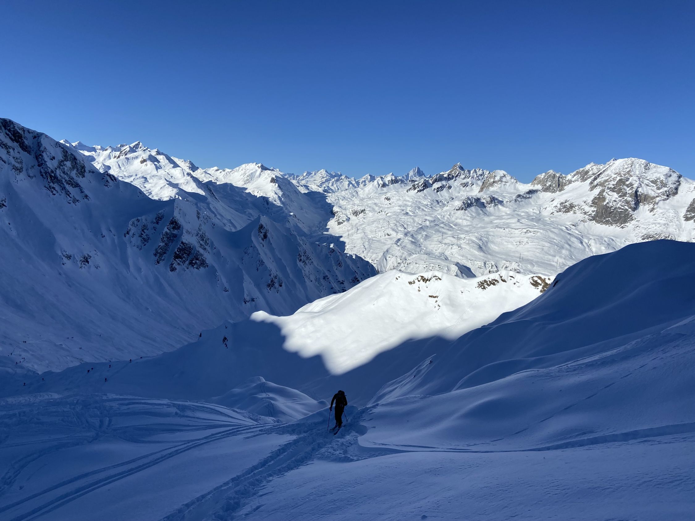 Absolut ideale Verhältnisse für eine Skitour. Super Wetter, ca. 100cm frischer Pulver, Lawinenstufe 3-