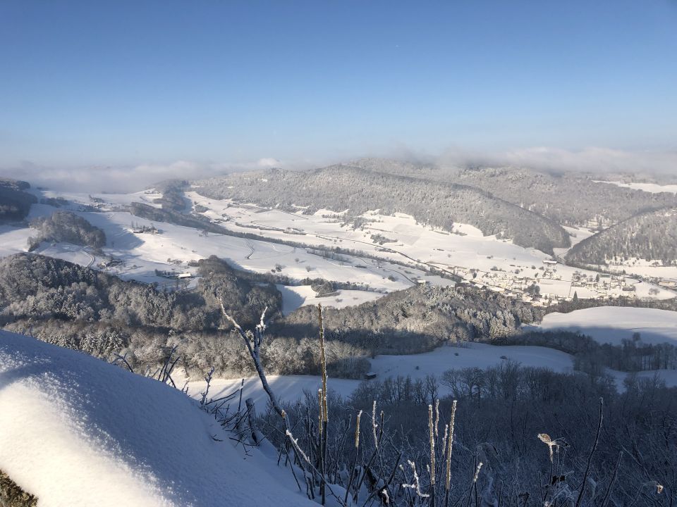 Verschneite Waldwege die letzten Meter zum Gipfel sind etwas rutschig. Das Ziel ist von verschiedenen Seiten zu erreichen. Wanderwege.
