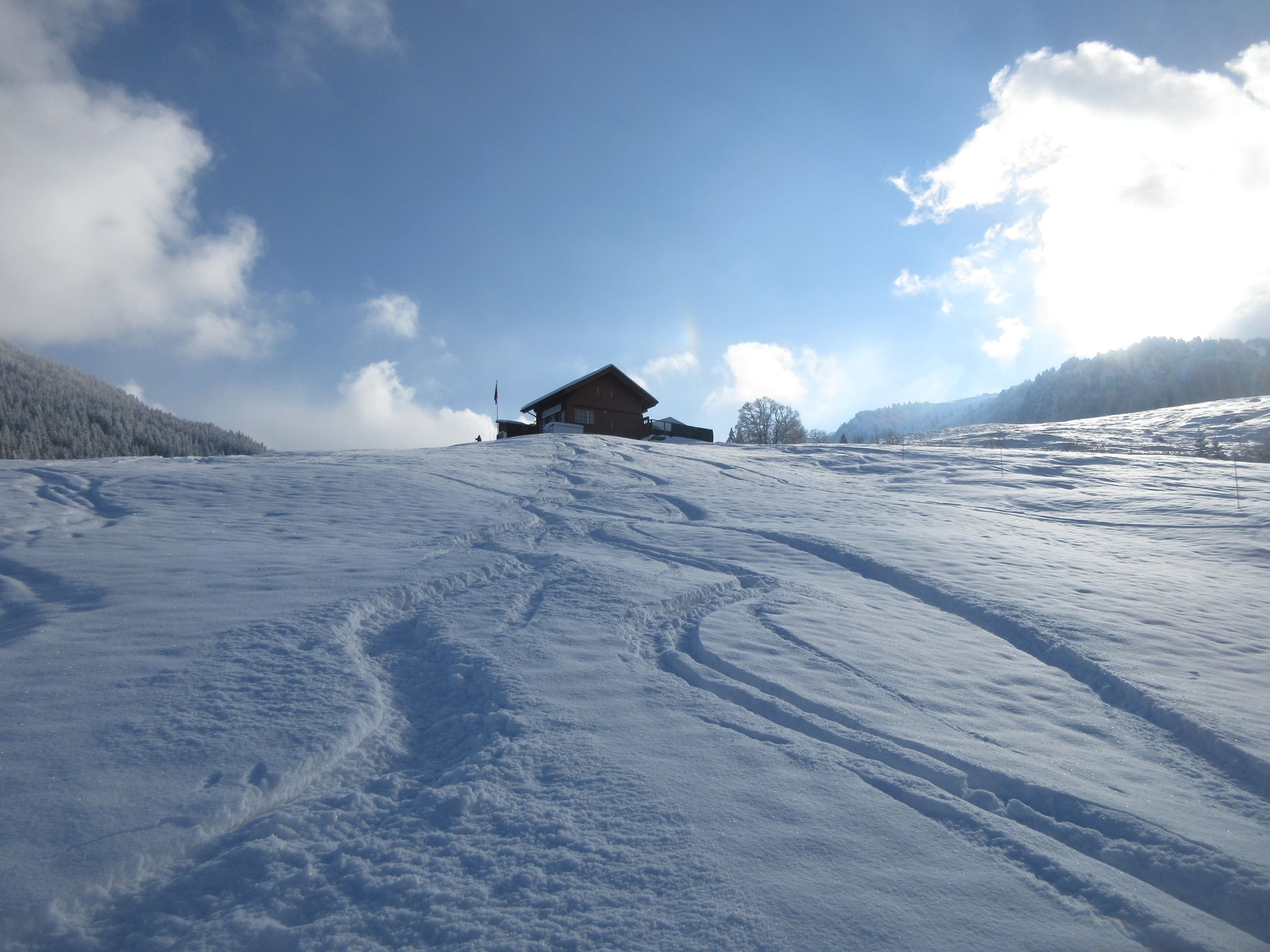 Morgens recht kalt und wolkenverhangen. Es hat ca. 10 cm Neuschnee gegeben. Im untersten Bereich noch nicht durchgehende Unterlage. Ab der Waldstrasse dann mit Unterlage. Doch sind die Buckel in den Weiden noch klar spürbar. Gegen Mittag kam die Sonne weitgehend raus. Oben mit leichtem Wind kalt. Sehr viele Tourengänger unterwegs, klar bei dem Wetter und dem ersten Schnee.