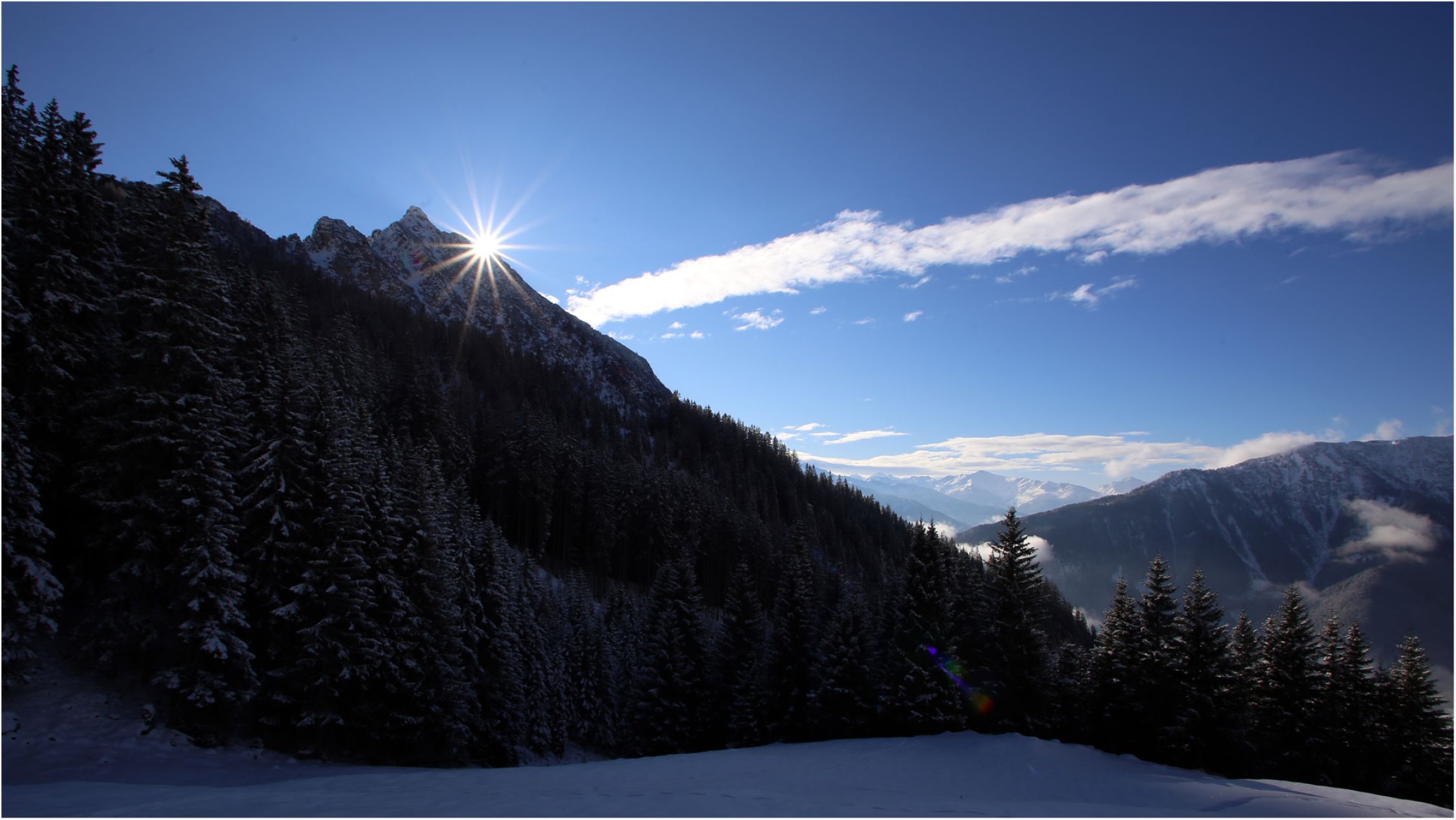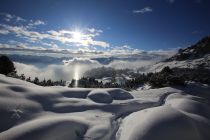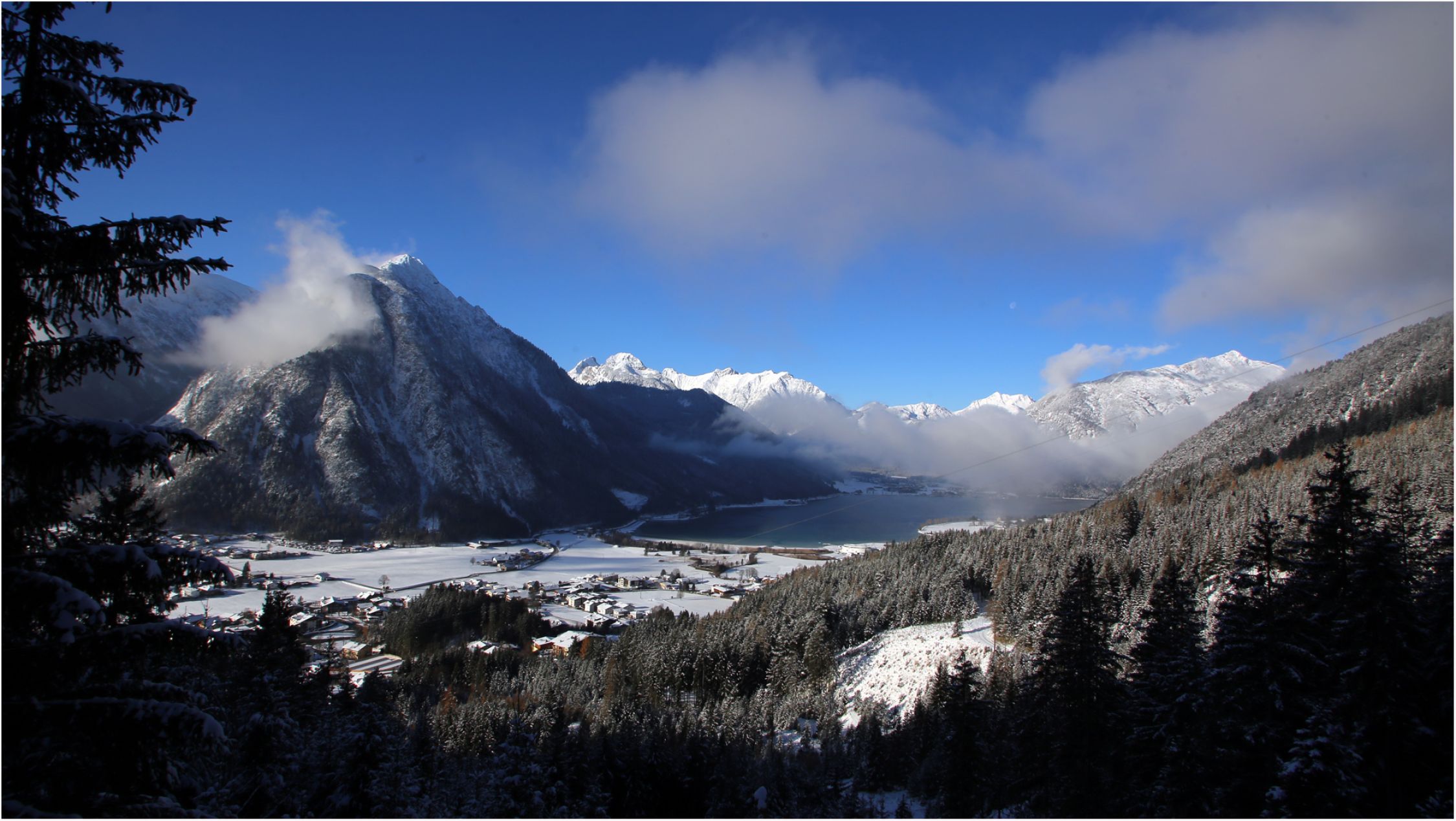 Blick in die Runde: Der Neuschnee täuscht, es hat aus meiner Sicht in der gesamten Region rund ums Inntal zuwenig Schnee. Am Achensee liegen im Tal gerade mal ein paar Zentimeter auf der Wiese.